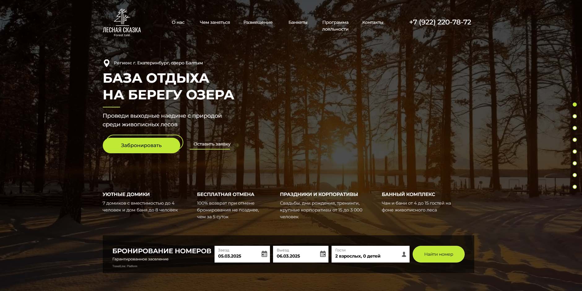 Вблизи Екатеринбурга находится замечательное место на берегу озера Балтым. Собственный пляж с мягким песком и шезлонгами помогут полностью расслабиться. Хвойным лес располагает к прогулкам, а для активного отдыха есть прокат гидроциклов и SUP-бордов. Все домики обустроены так, что вид из окна открывается именно на озеро. Для любителей попариться есть большой бревенчатый дом, совмещённый с русской баней.