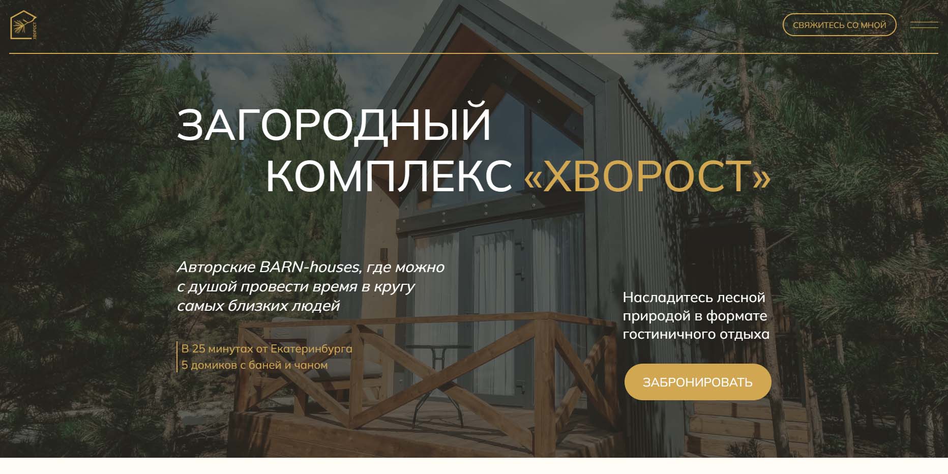 Тихий и спокойный загородный комплекс предлагает пять авторских домиков типа barn-house. В глэмпинге «Хворост» у каждого дома своя терраса с баней и чаном под открытым небом и в окружении могучих сосен. По выходным здесь проводят мастер-классы по приготовлению мясных и рыбных блюд на огне. Из развлечений только настольные игры и прогулки по лесу, поэтому отдых будет уединенным и безмятежным.