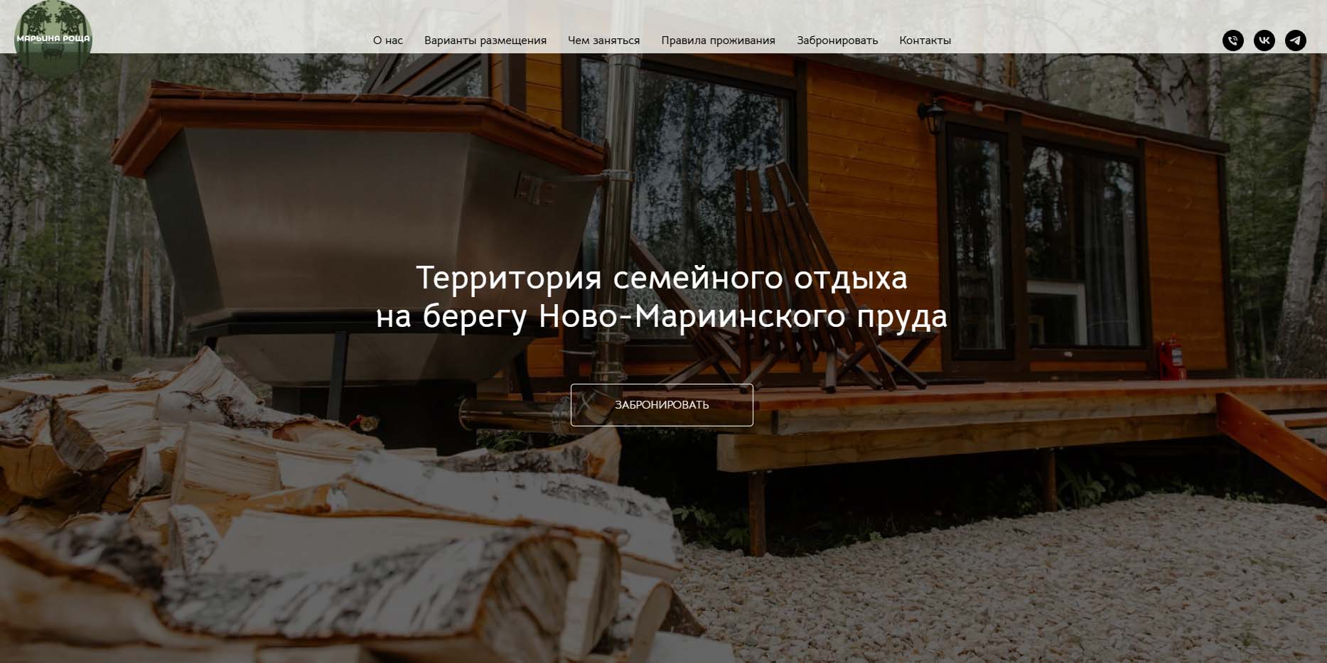 Уединенное место на берегу большого и красивого водоема. Собираясь сюда, можно смело брать удочки и наслаждаться тишиной. Время здесь замедляется, а желание вернуться остается надолго. Дома в глэмпинге «Марьина роща» рассчитаны на узкий круг гостей, от двух до четырех человек. Помимо рыбалки, туристам доступны сибирский банный чан, баня на дровах с душистыми вениками и мангальная зона с террасой. Летом популярны экскурсии до ближайших скал и катание на SUP-бордах.