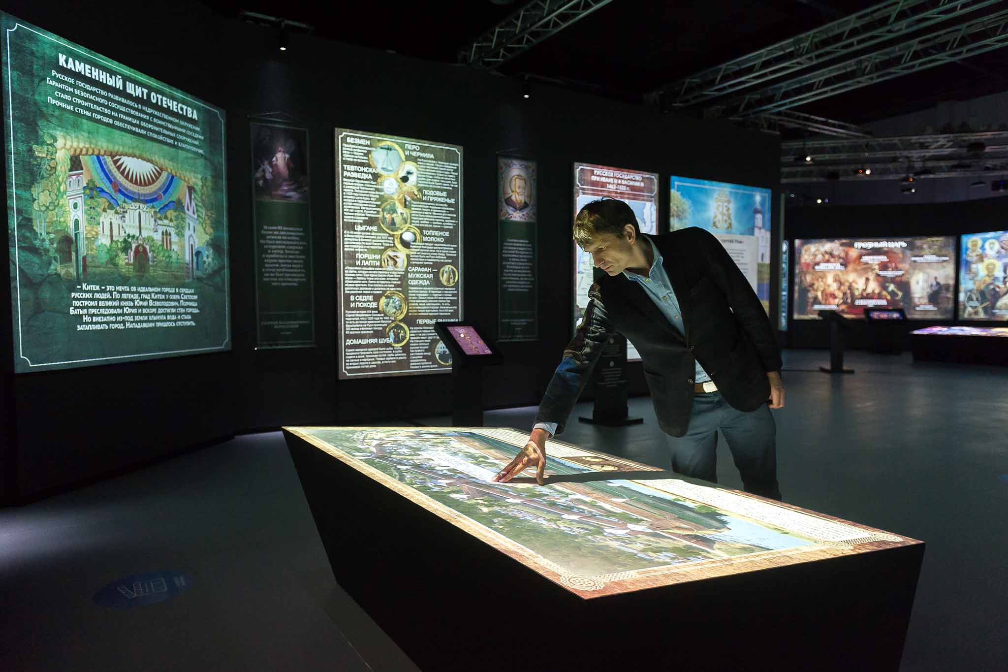 В мультимедийном историческом парке показана вся история России от Рюриковичей до наших дней. В залах установлены сенсорные экраны, виртуальные панели и множество другого современного оборудования. Технологии визуализируют символы страны: на полу отображена карта государства, на стенах появляются образы всех правителей, а на купольных потолках — лики святых. На площадке проходят постоянные выставки и регулярно организуют новые временные экспозиции.