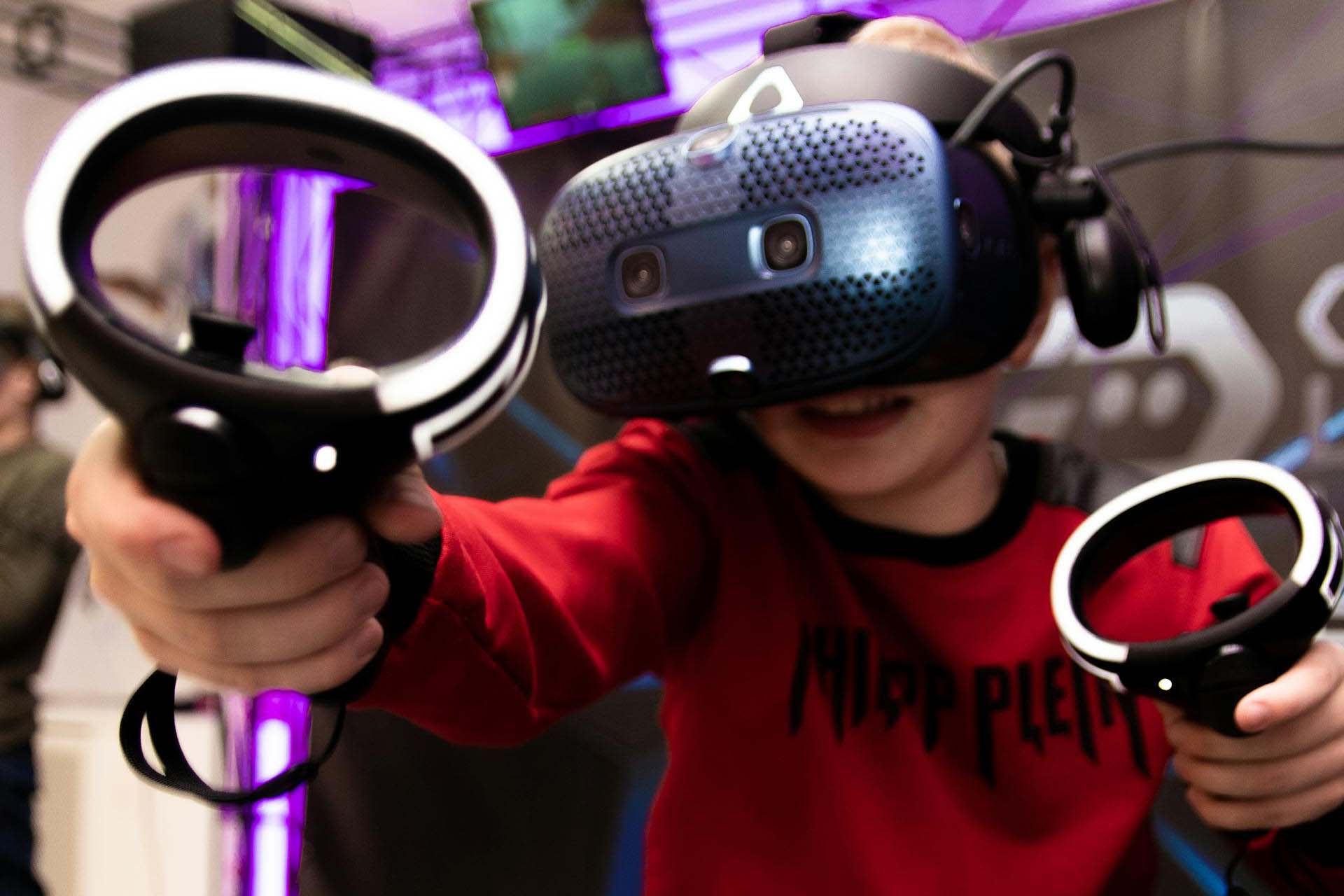 Арена виртуальной реальности работает круглосуточно. Имеется большой выбор игр для детей от шести лет на любой вкус: ребята могут попасть в фантастический мир будущего и пострелять из лазеров или ощутить волшебную атмосферу фэнтези с луком в руках, отправиться на поиски сокровищ древних цивилизаций или оказаться в доме с приведениями. Внутрь другой вселенной можно попасть как соло, так и с командой других игроков.