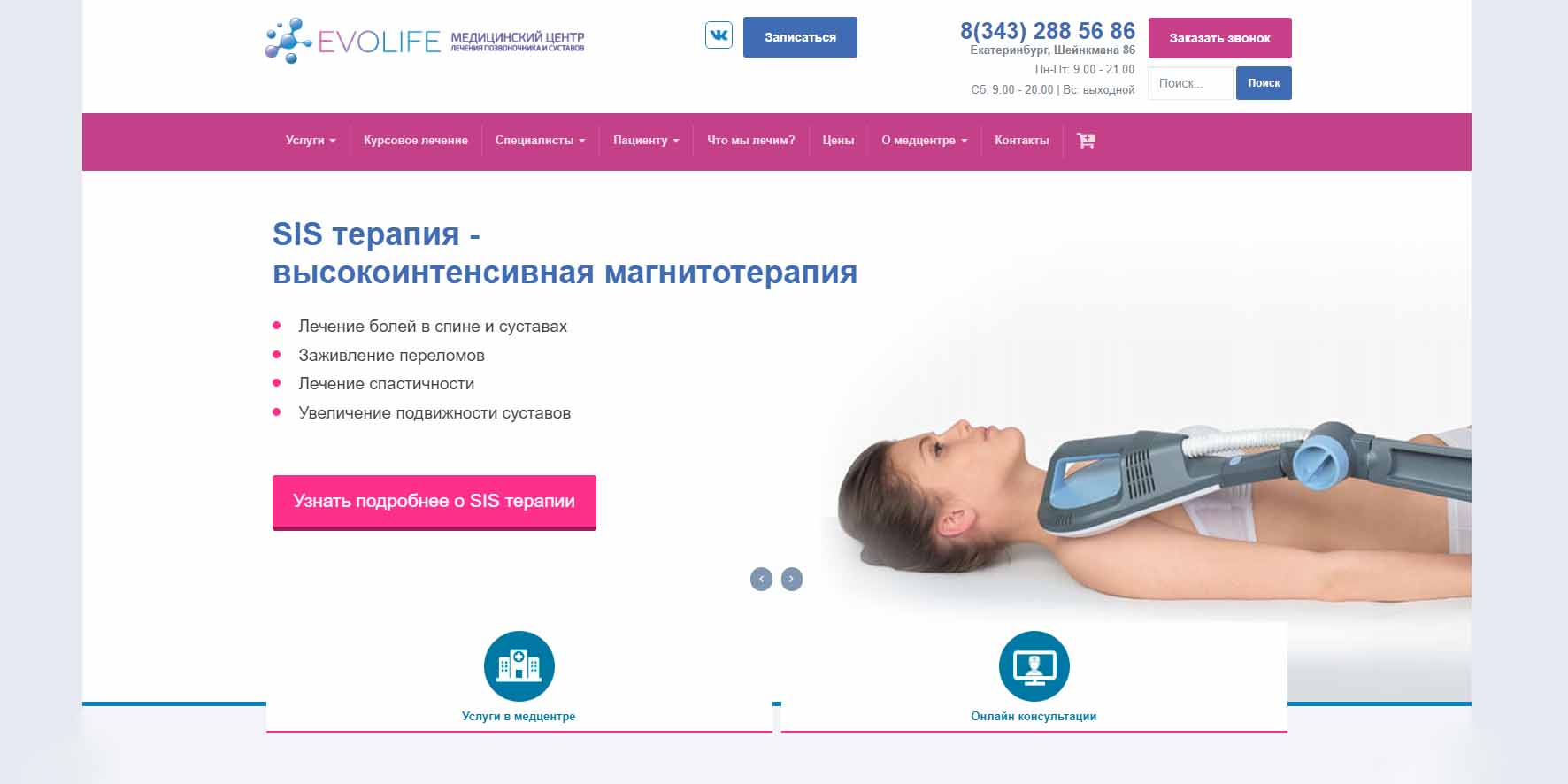 Для лечения позвоночника и суставов активно используется SIS терапия. Занимаются реабилитацией после инсульта. Центр предлагает выезд врача на дом, забор анализов, проведение ЭКГ, постановку капельниц, блокад.