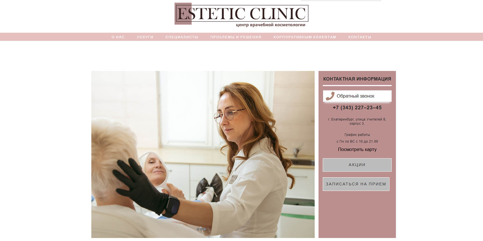 Косметологическая клиника, основанная в 1995 году, одно из первых медицинских учреждений подобного формата в Екатеринбурге. Специалисты систематически проходят повышение квалификации, все используемые препараты — сертифицированные, от официальных поставщиков. Для проведения процедур используется современное европейское оборудование. Помимо медицинских процедур, клиентам доступны услуги парикмахера, массажи, бесплатная парковка и душевая. Предлагаются услуги для мужчин.