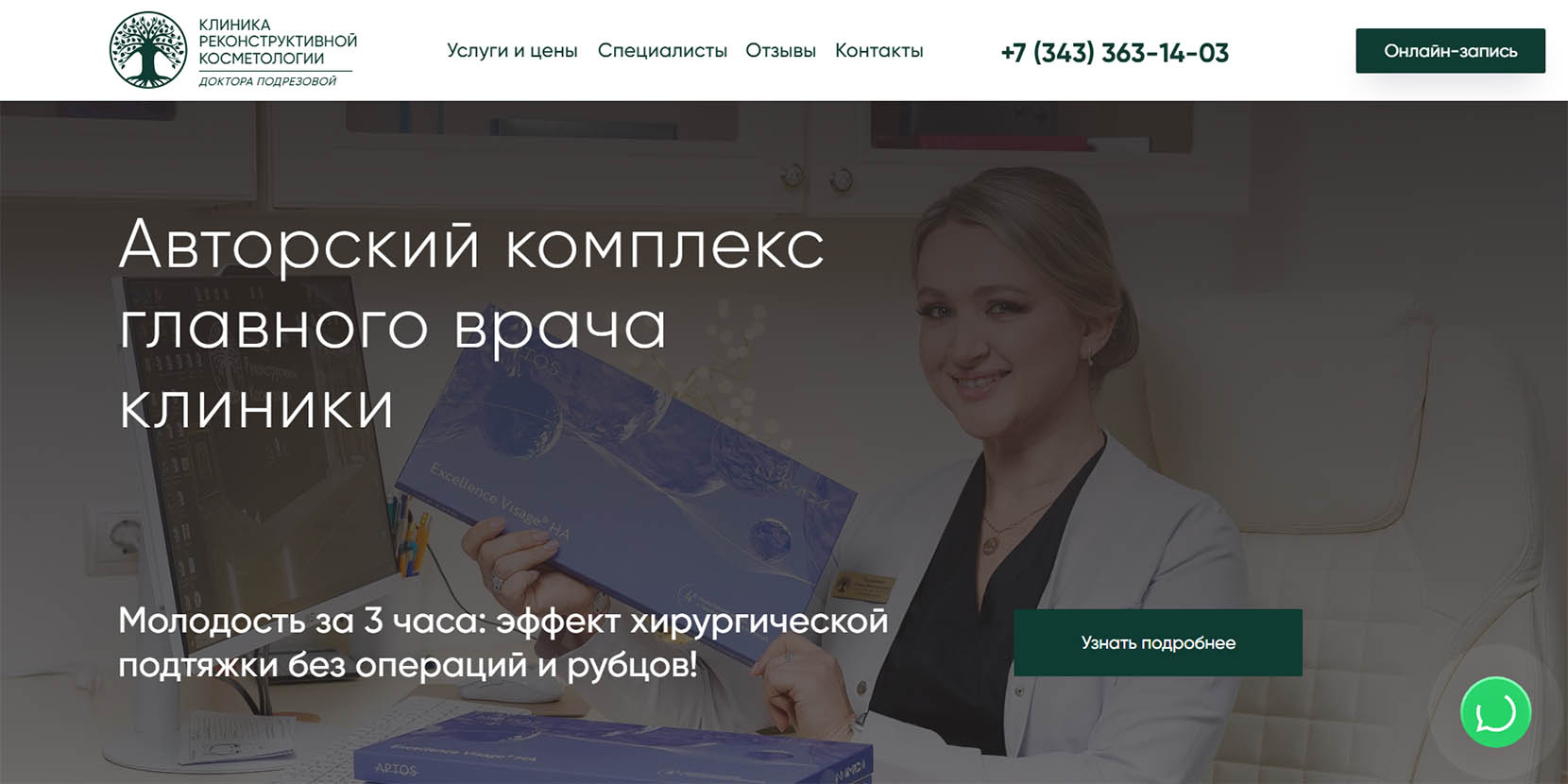 Клиника реконструктивной косметологии, ориентированная на восстановление красоты без пластической хирургии: нитевые методики, инъекционные, аппаратные и эстетические процедуры. Специалисты медицинского центра периодически повышают квалификацию, участвуя в международных конгрессах, курсах, форумах и конференциях. В клинике работают с глубокими слоями кожи для омоложения и восстановления. Для процедур используются оригинальные аппараты современных моделей.