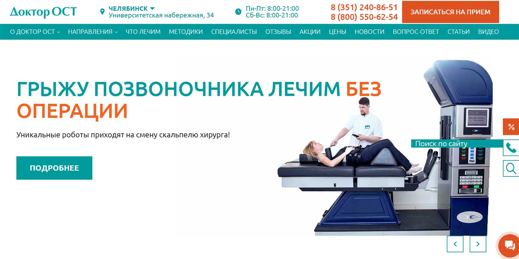 3. Если важно, чтобы всю диагностику можно было пройти в одном месте, найдите на сайте раздел «услуги». Не в каждой клинике есть МРТ, аппарат КТ или рентген.
