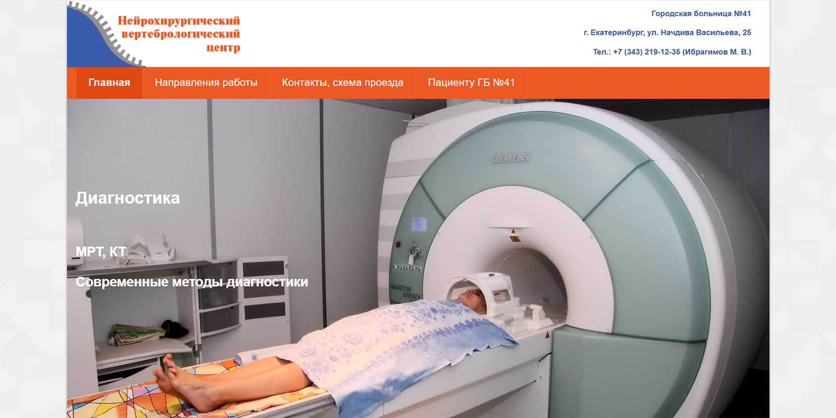 Нейрохирургический вертебрологический центр находится на базе многопрофильной больницы № 41. Благодаря современному клинико-диагностическому оборудованию здесь есть возможность оперативно поставить диагноз пациенту и приступить к лечению. В медучреждении оказывают широчайший спектр помощи. Например, в центре берутся за такие заболевания позвоночника как грыжи межпозвонковых дисков, смещения позвонков, остеопороз, компрессионные переломы тел позвонков и другие проблемы. В медучреждении используют малоинвазивные методики лечения, а в особо сложных случаях — помощь нейрохирургов.