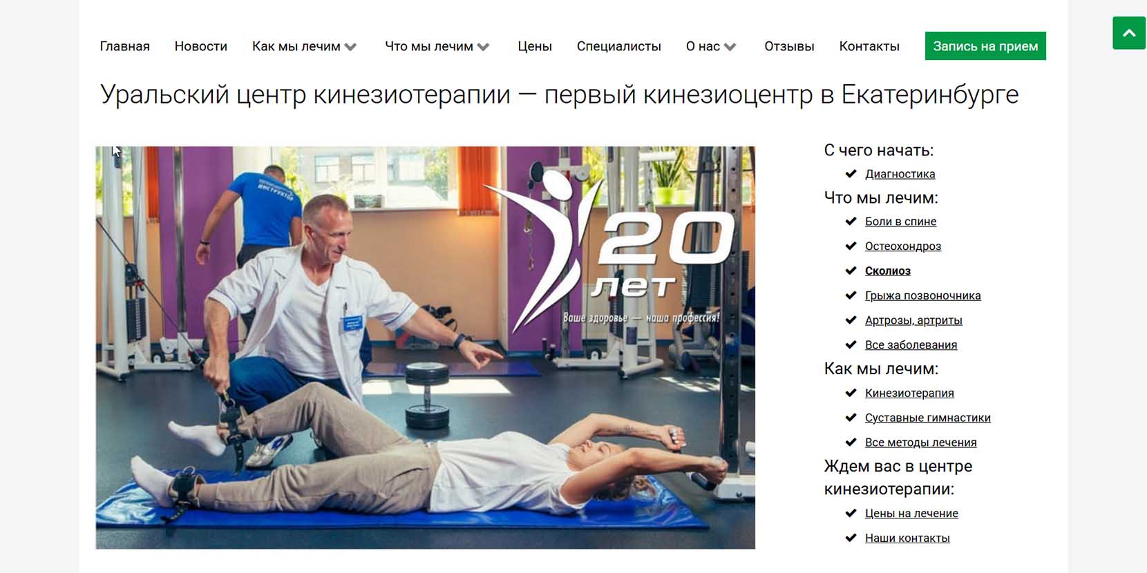Центр работает с 2006 года. Основной профиль медучреждения — проблемы с позвоночниками и суставами, а также реабилитация после травм и операций. В центре работают с пациентами, у которых выявлены разрушения межпозвоночного диска, остеопороз, болезни опорно-двигательного аппарата, грыжи, сколиоз, плоскостопие и другие заболевания. Цель кинезиотерапии — создать максимальные условия для работы мышц в полном их объеме. Прием ведут врачи мануальной терапии и спортивной физкультуры, неврологи, травматологи-ортопеды и другие специалисты.