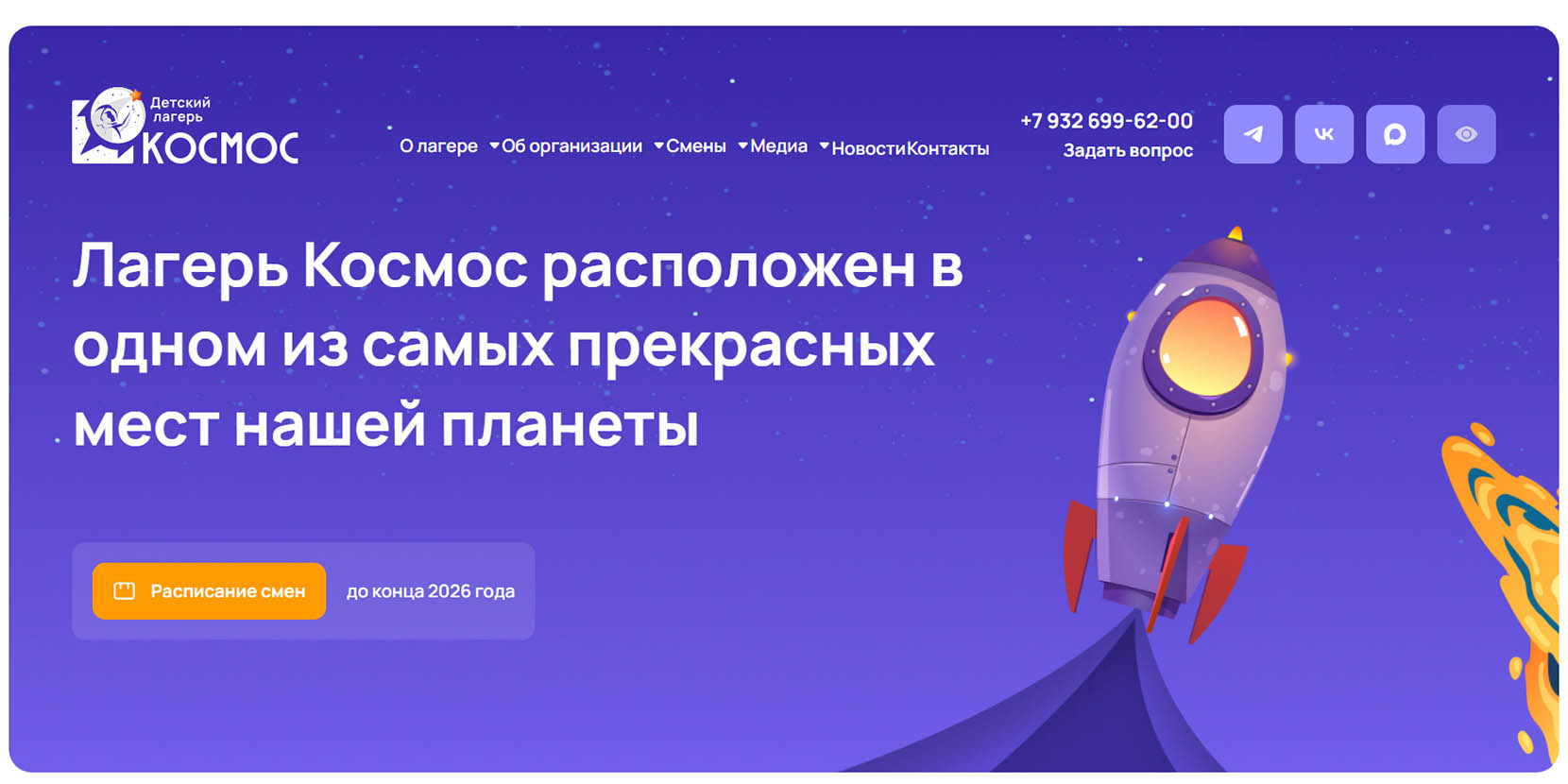 Основанный в 1967 году, лагерь после возрождения в 2017-м снова принимает детей. На территории расположены семь корпусов, названных в честь планет Солнечной системы. Для активного досуга оборудованы четыре современные спортплощадки, а также есть сквер дружбы, который дети создают своими руками. В основе каждой смены — программа «Космополис», дополненная более чем 20 направлениями дополнительного образования: от астрономии и экологии до макраме, фитнеса, туризма и управления квадрокоптерами.