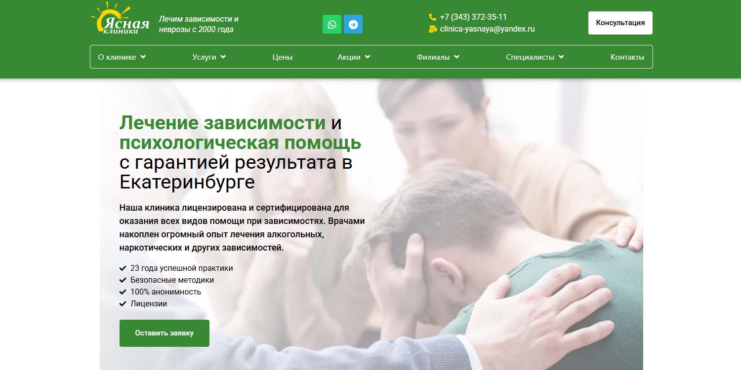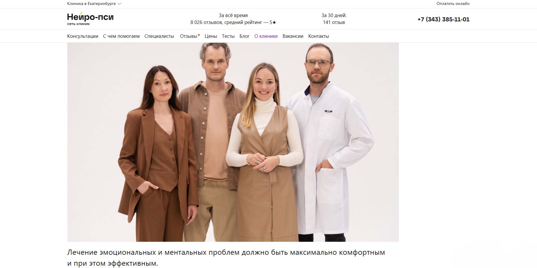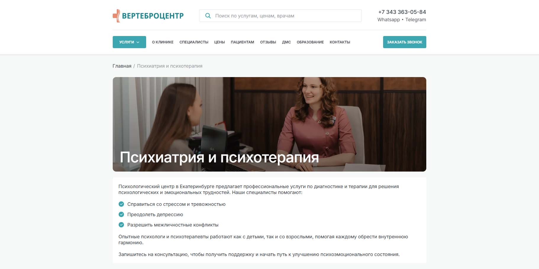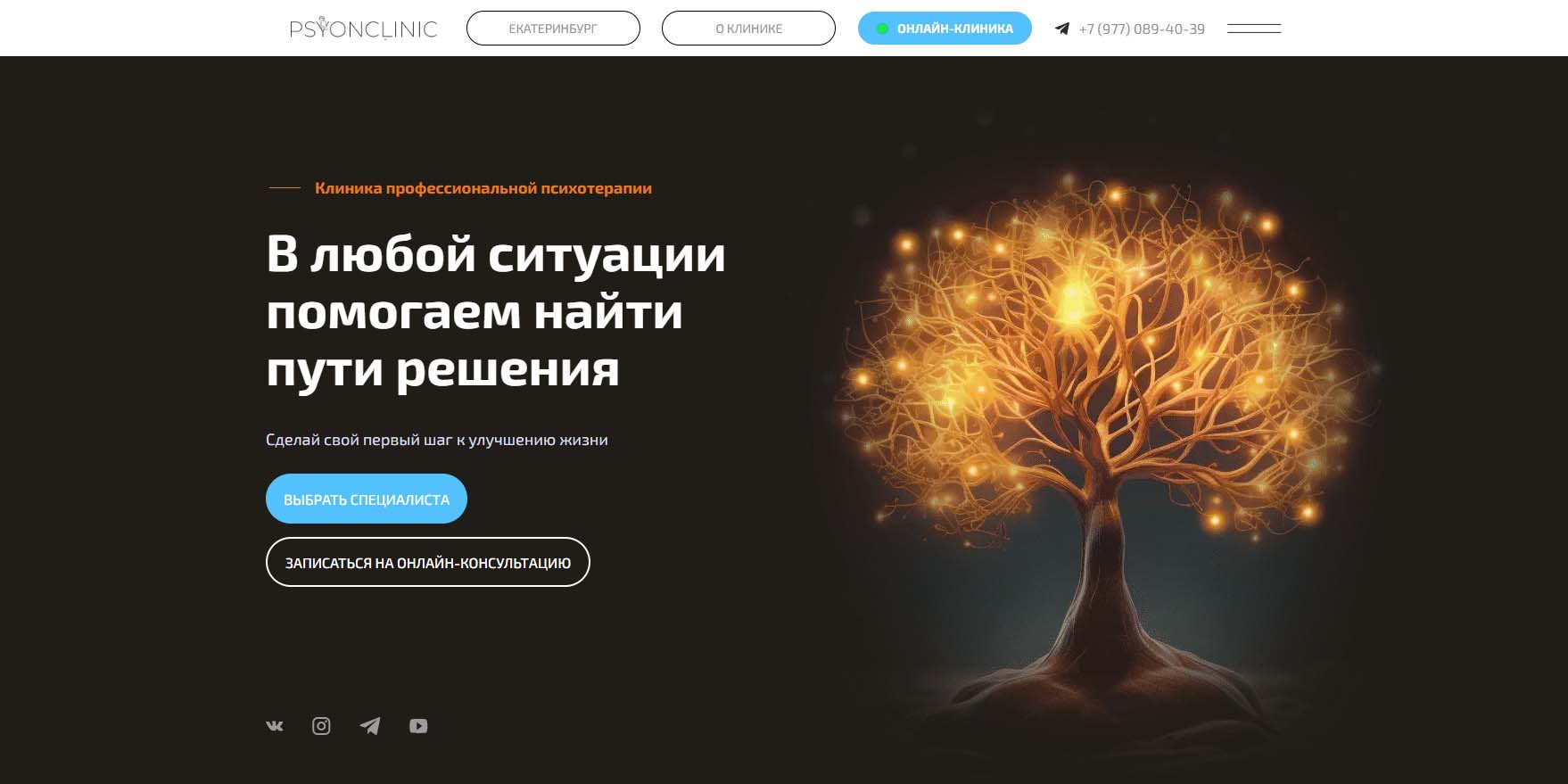 | Соцсети | ВК, Telegram (клиника), Telegram (центр психотерапии) |
