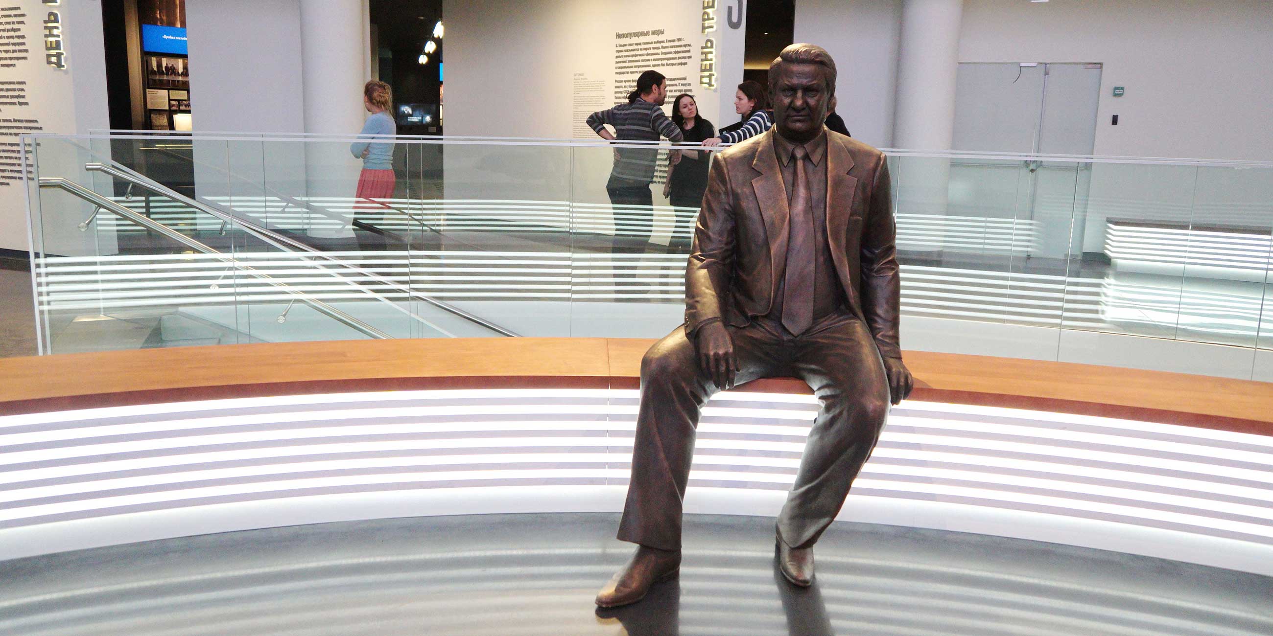 У входа в центр гостей встречает сам Борис Николаевич, а точнее, его десятиметровый монумент. К слову, на его открытие в 2011 году в Екатеринбург приезжал Дмитрий Медведев.