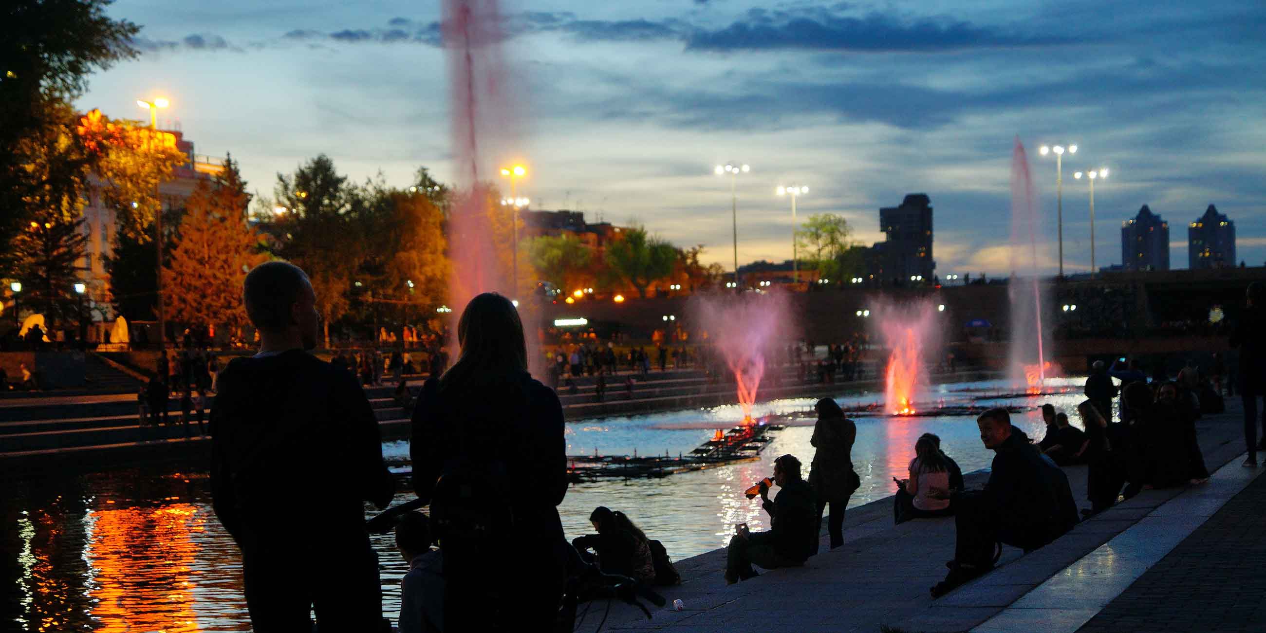 Видите лодочную станцию и Екатеринбург-сити с Ельцин Центром вдалеке - значит, вы на верхней площадке Плотинки. Рядом на лестнице мужчины продают книги и увлеченно играют в шахматы, а из перехода раздаются песни уличных музыкантов - вам туда. Проходите небольшой тоннель с портретами Виктора Цоя - и вы в Историческом сквере.