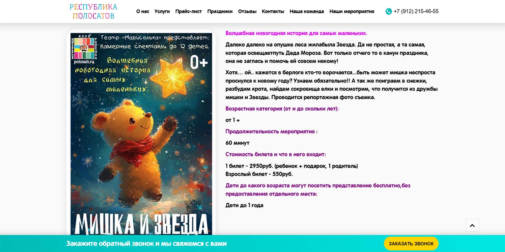 Малыши отправятся на поиски потерявшейся волшебной звезды, которая освещает путь Деда Мороза. Они также познакомятся с дружелюбным мишкой, поиграют в подвижные игры и обязательно заглянут под елку. А в конце каждый маленький участник обязательно получит фото на память.