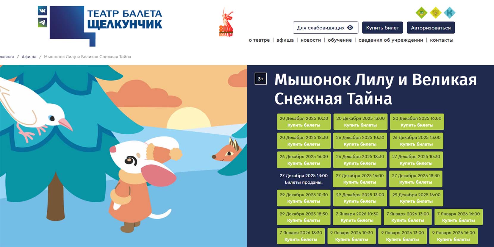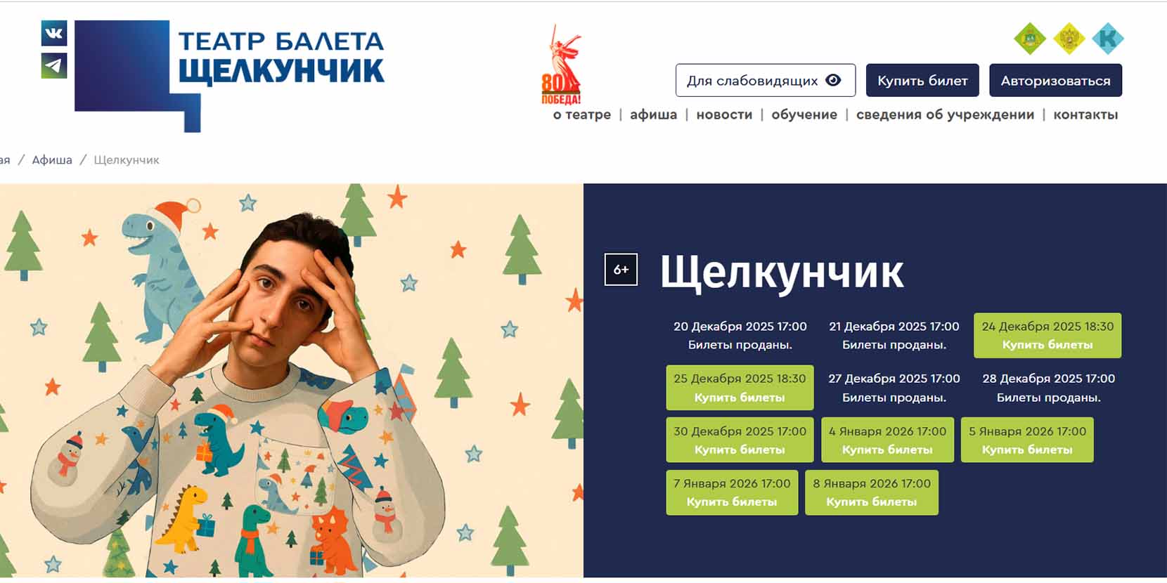 | Даты | 20, 25, 27, 29 декабря; 2, 4, 6, 8, 10 января |