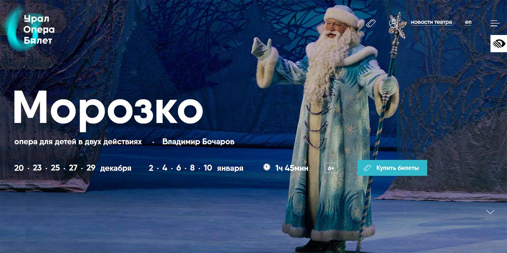 Урал Опера Балет представит праздничную постановку для детей от 6 лет. Композитор из Екатеринбурга Владимир Бочаров стал автором оперы «Морозко», которая завоевала любовь зрителей. С этого новогоднего представления можно начать знакомить ребенка с оперой. Авторы спектакля сообщают, что сам Морозко спустится в зрительный зал, чтобы приветствовать гостей.