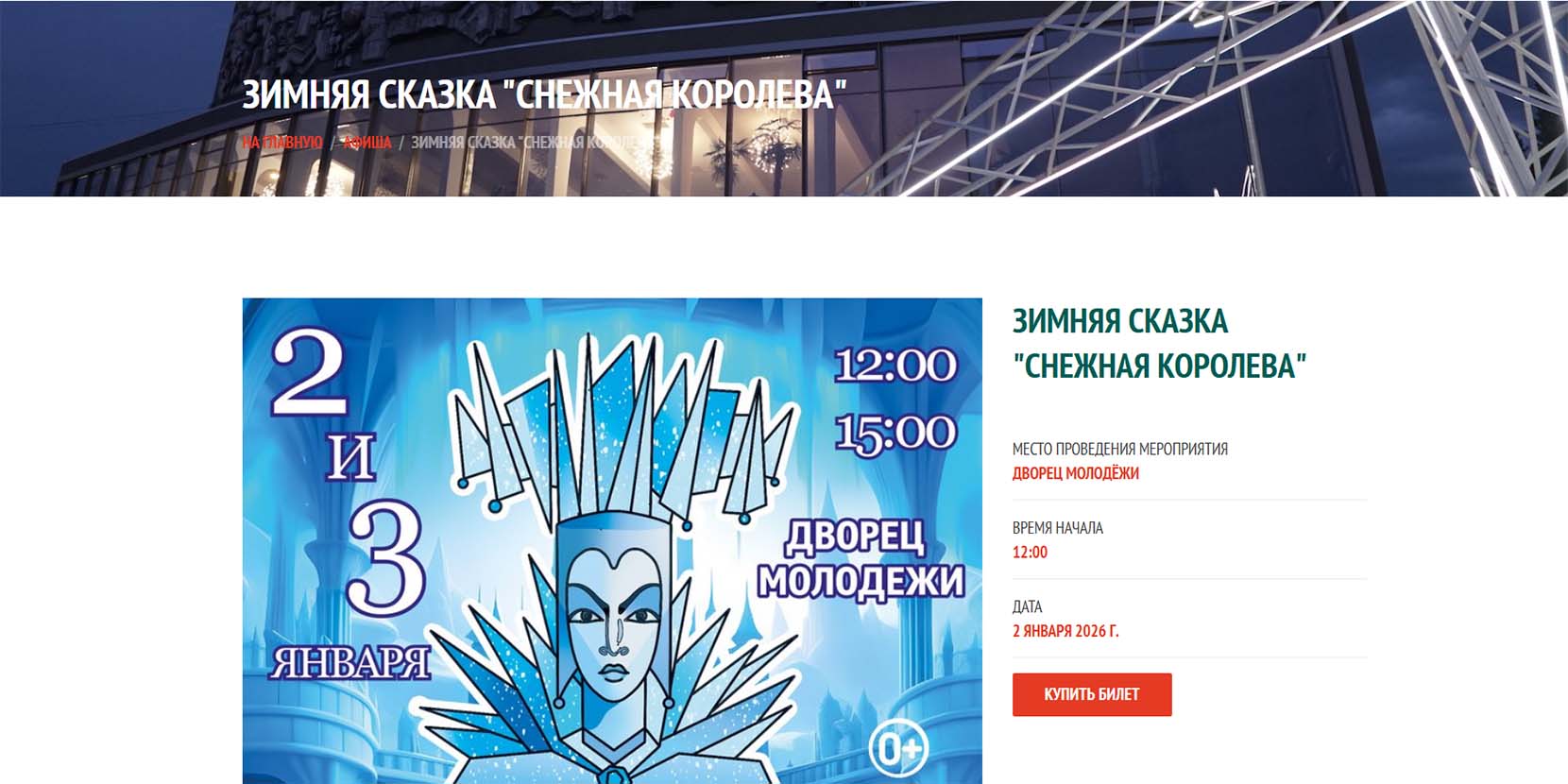Ледовое шоу Ильи Авербуха с участием Олимпийских чемпионов перенесет зрителей в знаменитую сказочную историю. Спектакль уже несколько лет проходит с оглушительным успехом по всей России, не остался в стороне и Екатеринбург. Яркие костюмы, феерические декорации и профессиональные артисты подарят незабываемые эмоции и создадут праздничное настроение как детям, так и взрослым.