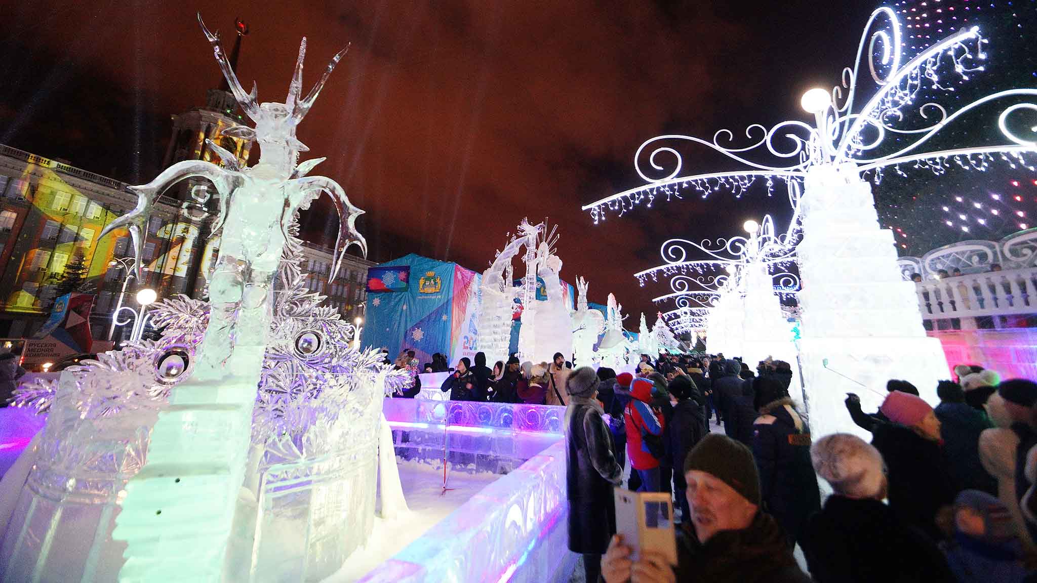 По традиции здесь делают ледовый городок, где будут представлены герои русских сказок. Плюс башни и горки. Популярное место у гостей и местных жителей.