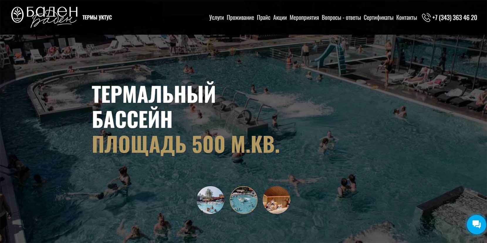 Термальный комплекс в 15 км от Екатеринбурга отлично подходит для отдыха с семьей и друзьями. Есть три гидромассажные зоны и оборудованная деревянная пляжная «палуба». Максимальная глубина бассейна — 1,5 м. Оборудованы две чаши с разным температурным режимом: +35 и +37 градусов. Фильтрация воды производится круглосуточно: проходит 7 песочных фильтров и дезинфицируется автоматической электронной станцией. Вода в бассейны подается из глубоководной артезианской скважины.