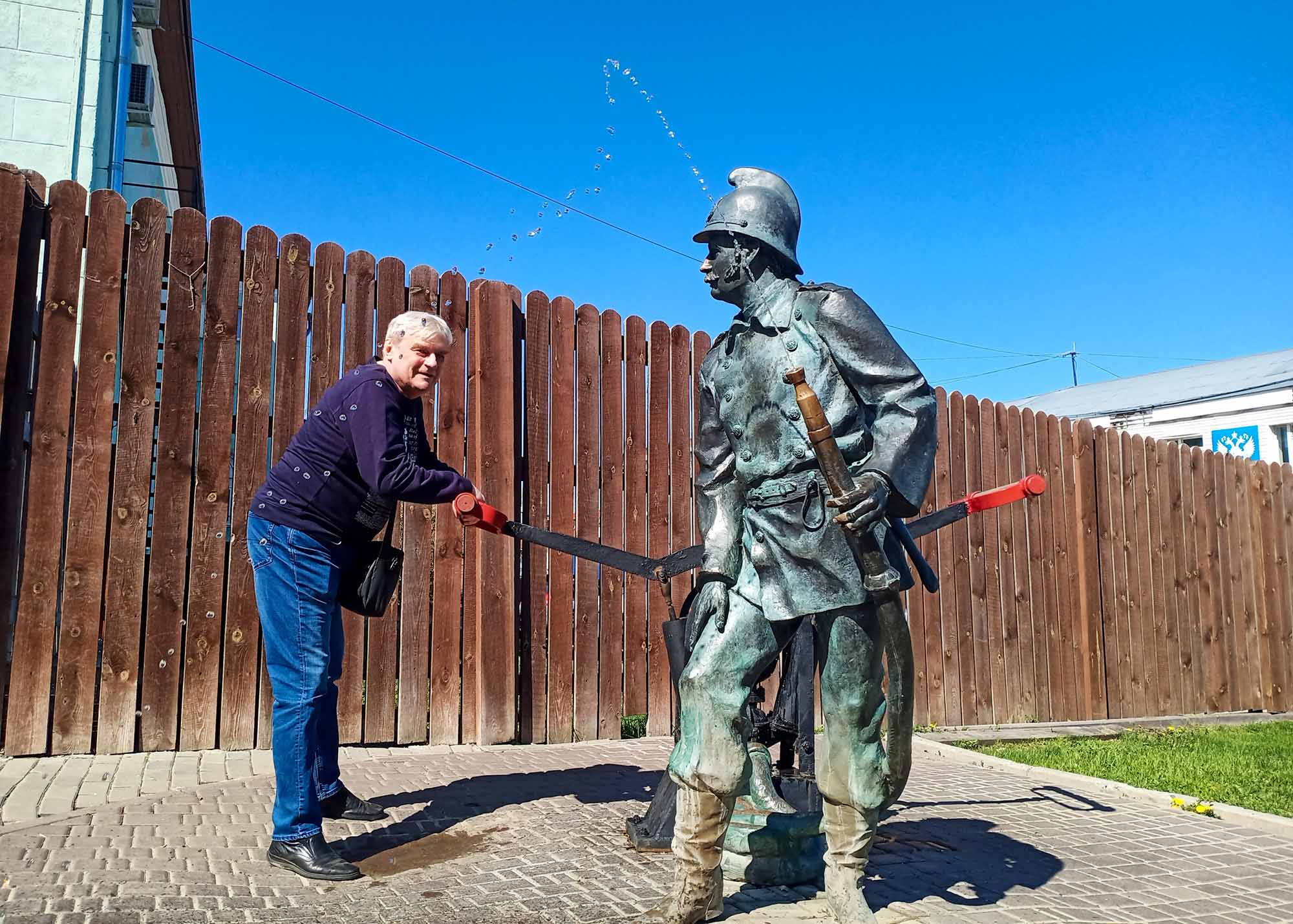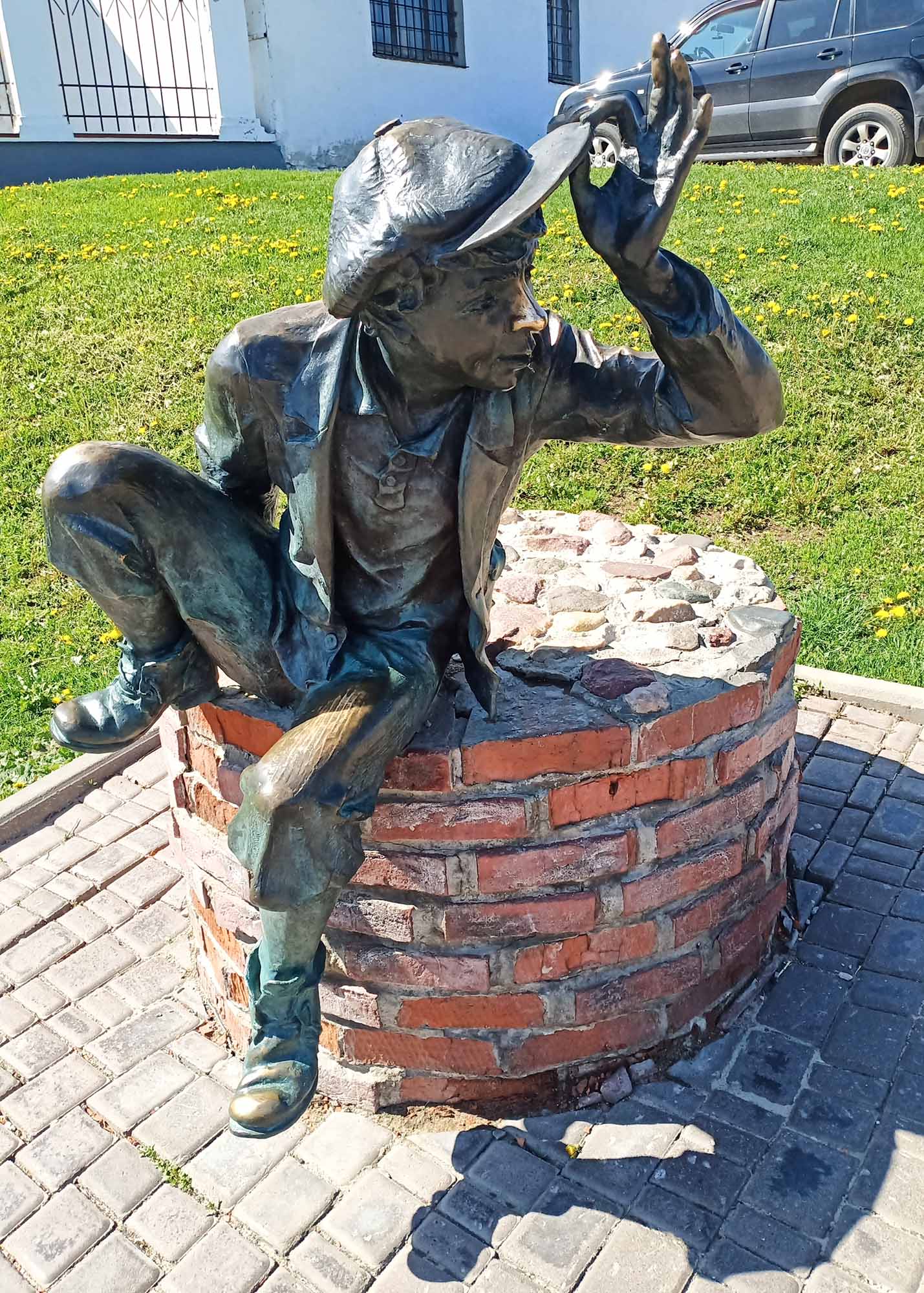 …Выехали не очень рано, а планировали в первый день добраться засветло до Нижнего Новгорода. Потому были сомнения, заезжать ли по дороге во Владимир, в котором бывали до того не раз, или объехать его по окружной. Традиционных московских пробок на выезде на трассу М7 мы счастливо избежали (да и сама она была вполне свободна), что позволило быстро промчать 180 км до «столицы Великого княжества Владимирского» и выкроить время на осмотр любопытных улочек в центре, где забавные современные памятники прекрасно вписались в исторический квартал города.