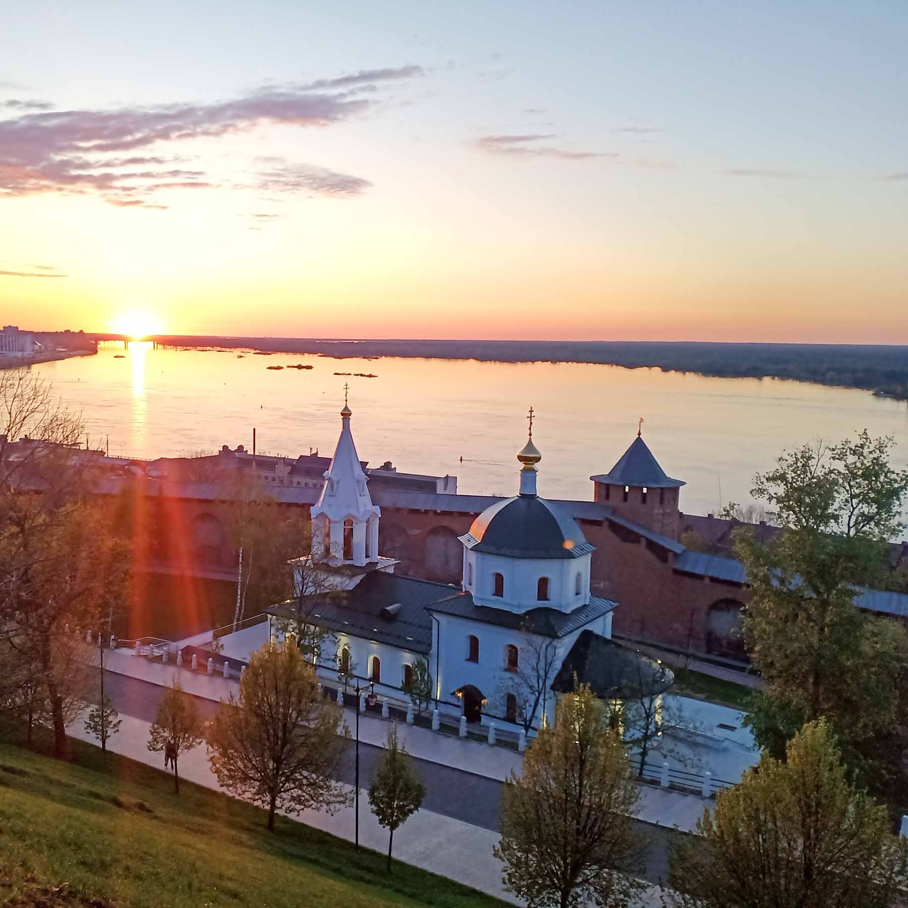 Вот со дна этого «оврага» мы и полезли на штурм высокого и крутого кремлевского холма. Успели до темноты осмотреть его территорию и полюбоваться с высоты кремля на изумительной красоты закат. Поужинали уже в ночи, а потом прошлись по уютной Рождественской улице, тянущейся параллельно берегам Оки и Волги.