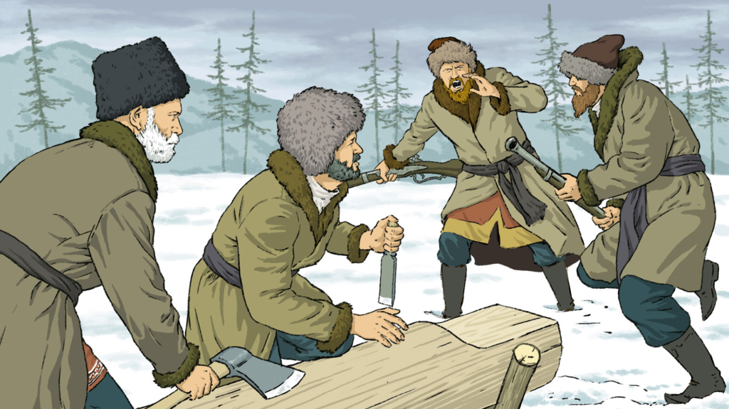 Какая же нелёгкая влекла казаков на неизведанный Восток? Таёжная вольница, жажда обогащения или страсть открытий? Все они в большинстве своём были люди служивые, а вменялось им искать «новые землицы», «приводить под высокую государеву руку» местное население и пополнять казну сбором ясака с туземцев, в основном «мягкой рухлядью», как тогда называли пушнину.
