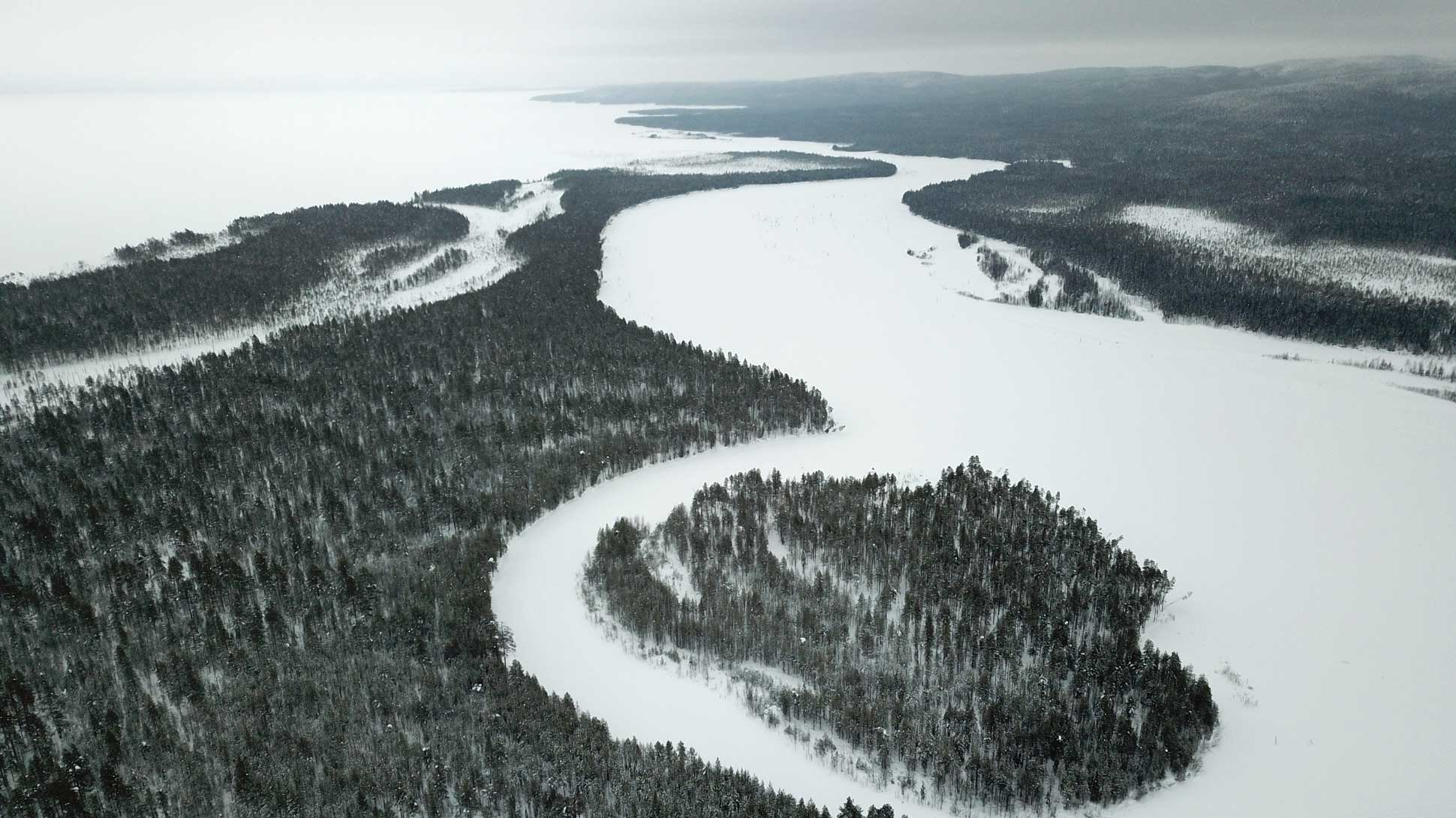 Старт на снегоходах — от железнодорожной станции Чупа, что на полпути между Петрозаводском и Мурманском. И далее — на юг озерами-озерами…
