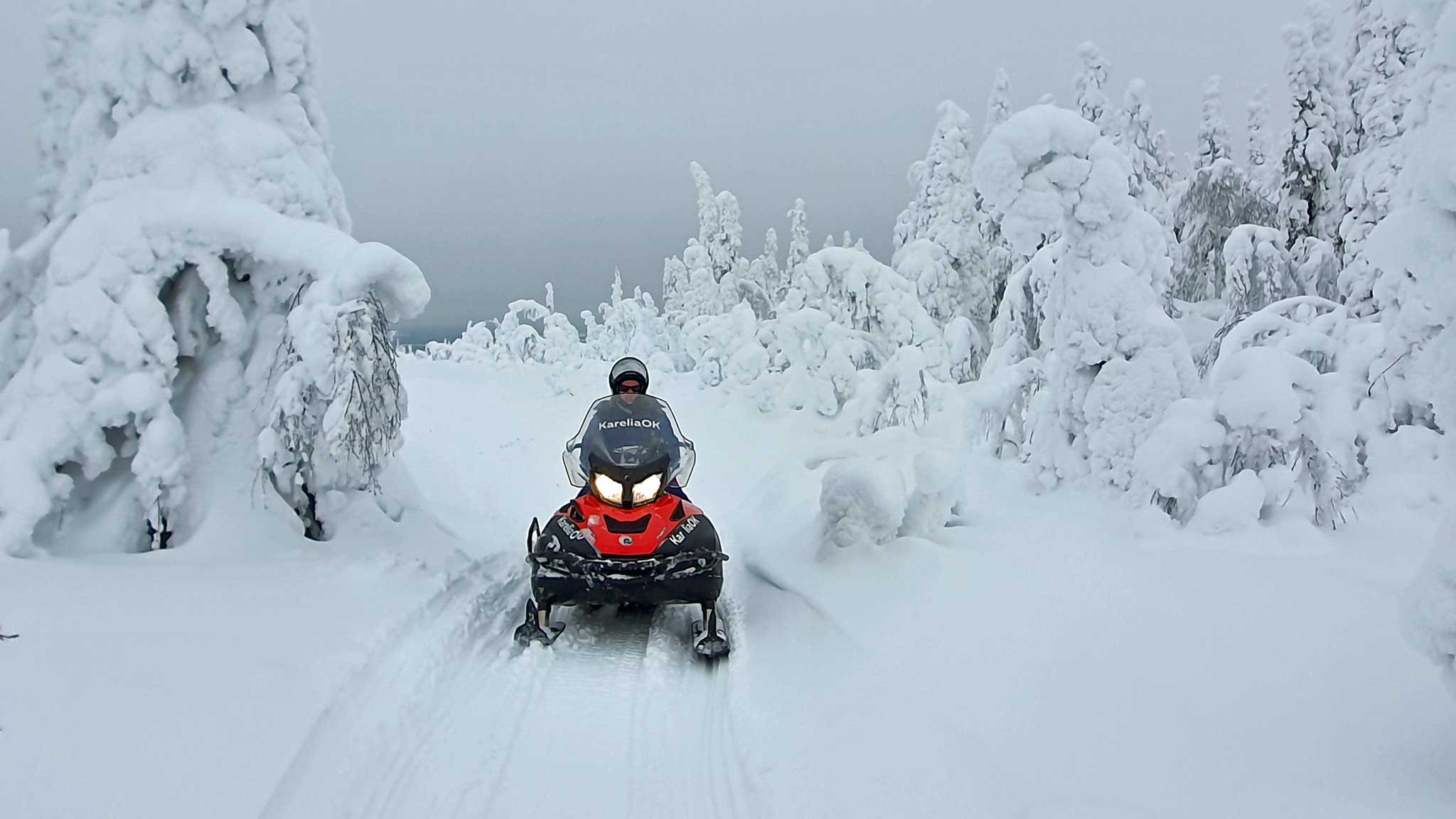 Хорошо, что были у нас на маршруте не только озера, но и прекрасные заснеженные лесные участки, где важно было умудриться проскочить между тесно растущими деревьями и при этом не получить веткой по шлему.