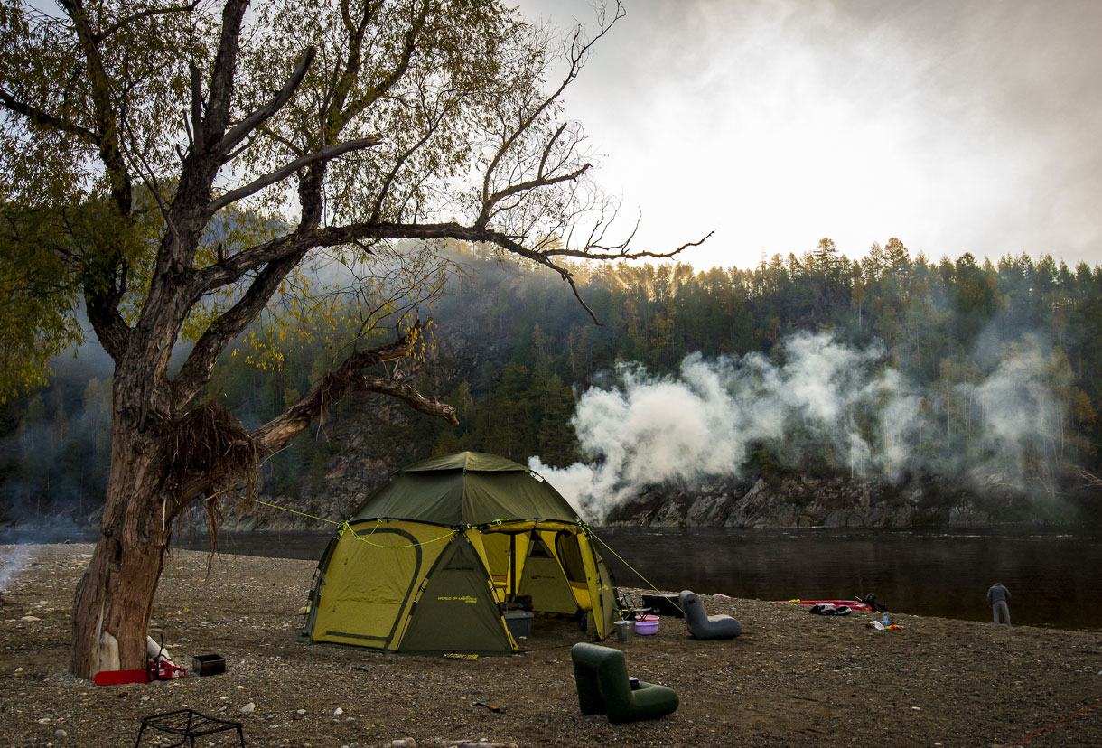 в накачанное судно. Еще недавно на земле лежал лишь плоский «бублик», а спустя час – полноценное плавсредство. Этот шестиметровый рафт прошел с нами огонь, воду и бурлящие пороги. Он запросто берет на борт семерых крепких мужиков и полтонны груза!