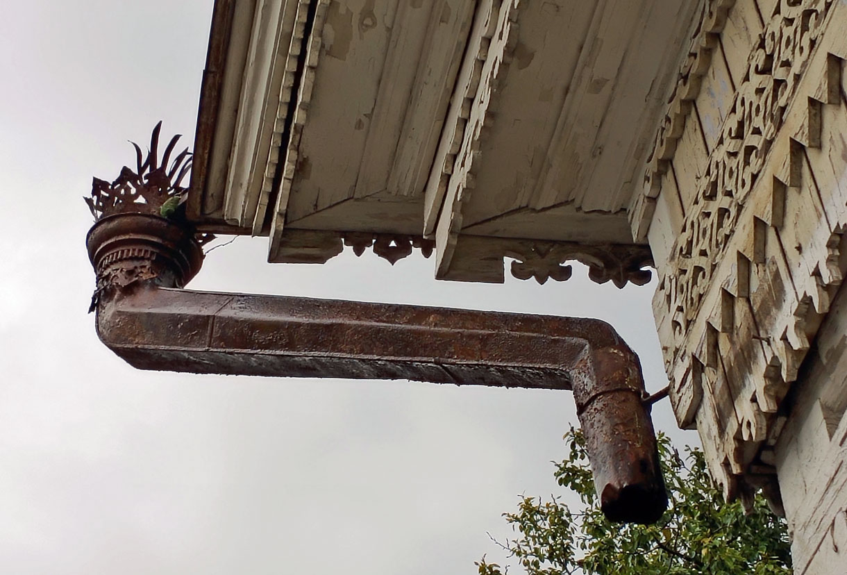 Мы притормозили на полчасика у нарядного теремка, который стоит прямо на трассе М7 (ул. Московская, 43), с правой стороны по пути в Нижний Новгород. Мимо не проедешь. Этот шедевр деревянного зодчества начала XX века можно считать визитной карточкой Гороховца. Бревенчатый особняк промышленника-судостроителя Шорина (сегодня Дом творчества и ремесел) действительно похож на сказочный терем с двумя башнями. Обратите внимание на уникальную правую башенку, сложенную из идеально гнутых по кругу (видимо, под горячим паром) толстых бревен. Обязательно обойдите дом — на заднем дворе его есть забавные деревянные скульптуры, в том числе, и упомянутого Царя Гороха.
