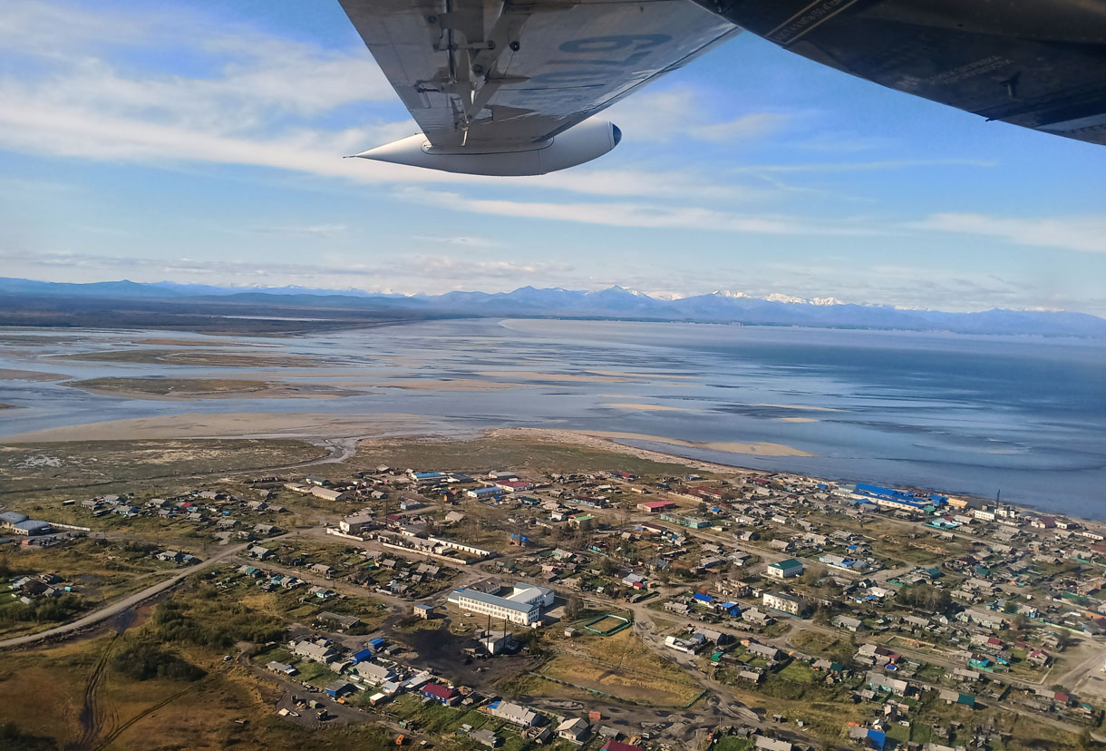 как стрекоза над заснеженными сопками Станового хребта и, наконец, идет на снижение.