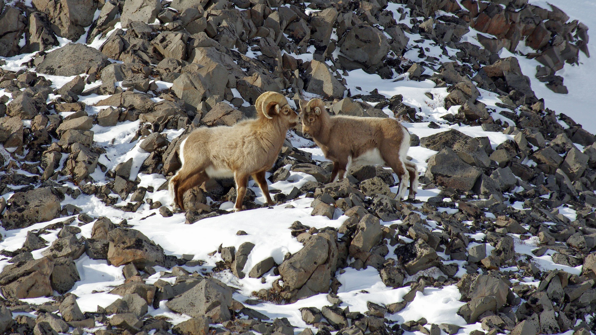 С востока голубоватый свет утра выхватывает лохматый край скалы. С неба на землю падают смежные вихри. И вдруг шорох, кто-то пошевелился на соседнем выступе, кажется, самки. С диким стоном баран бросается к ним. Не щадит себя в прыжках, торопится. Вот он уже на выступе, но там его поджидает соперник.