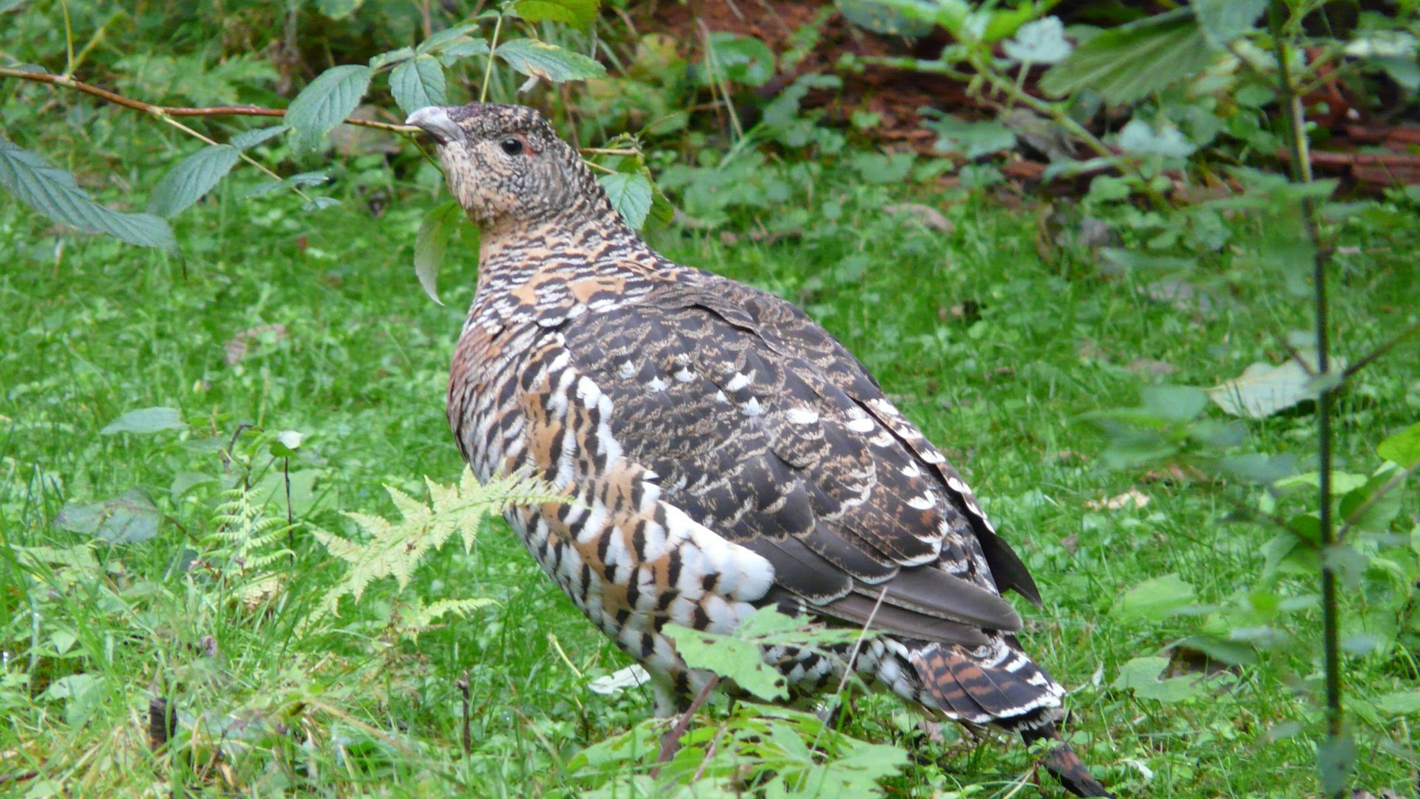 Куропатка громким криком собирает разбежавшихся птенцов.