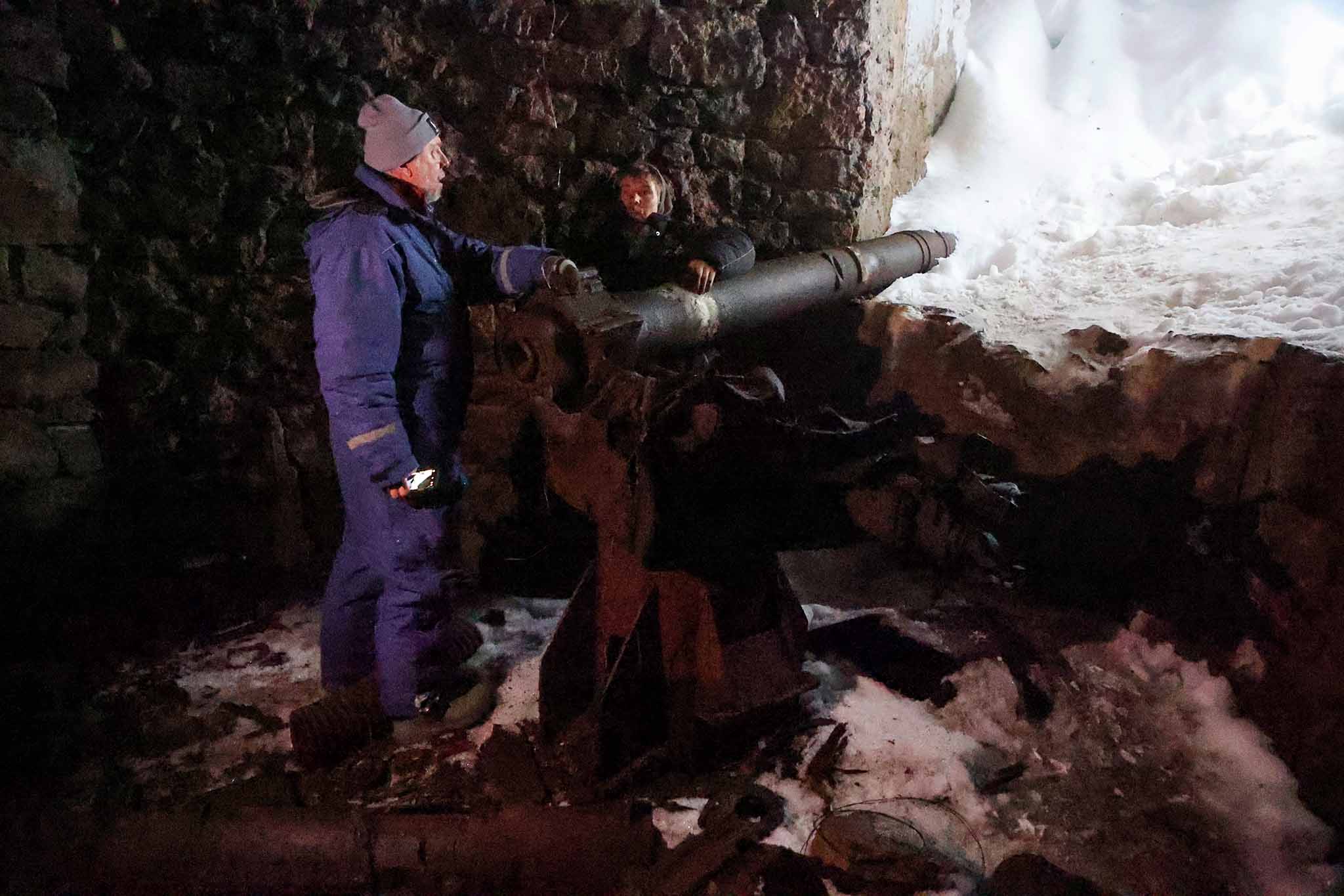 Дальше на нашем пути лежал полуостров Средний. Здесь немало укреплений, дотов и береговых батарей с подземельями. Не только времен Великой Отечественной, но и более ранних финских дотов и более поздних, заброшенных ныне, советских гарнизонов. Часть из них мы детально осмотрели. Не только снаружи, но и спустившись в их подземелья, где были оборудованы небольшие казармы для личного состава и склады боеприпасов.