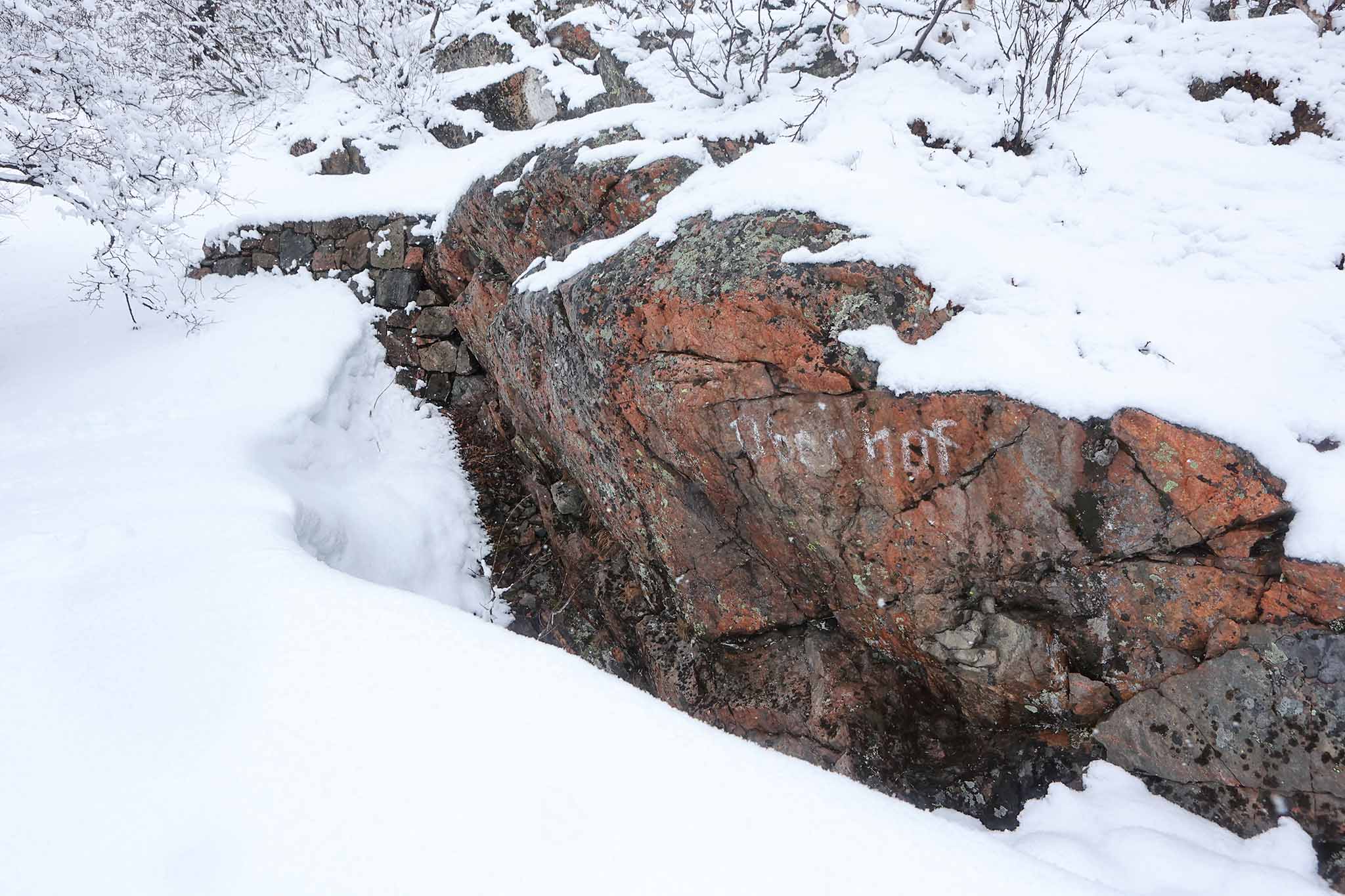 Любопытно, что именно в тот момент, когда мы жужжали аккумуляторным перфоратором, сверля в граните отверстия под крепеж доски, нас посетил хозяин Муста-Тунтури — большой оранжевый лис. Он занял позицию метрах в семи и с деловитым прищуром наблюдал за нами, то ли из любопытства, то ли ожидая чего-то съестного. Отрезали ему кусочек сала.