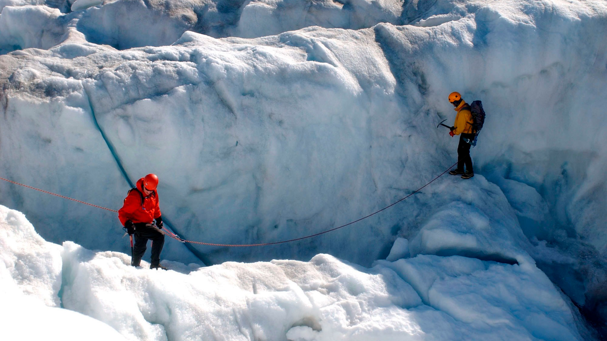 Подъем на Ледовую базу (некогда действовавший научный центр гляциологов) для проведения снежно-ледовых тренировок: обращение с кошками, работа ледорубом на высоте около 3700 метров.