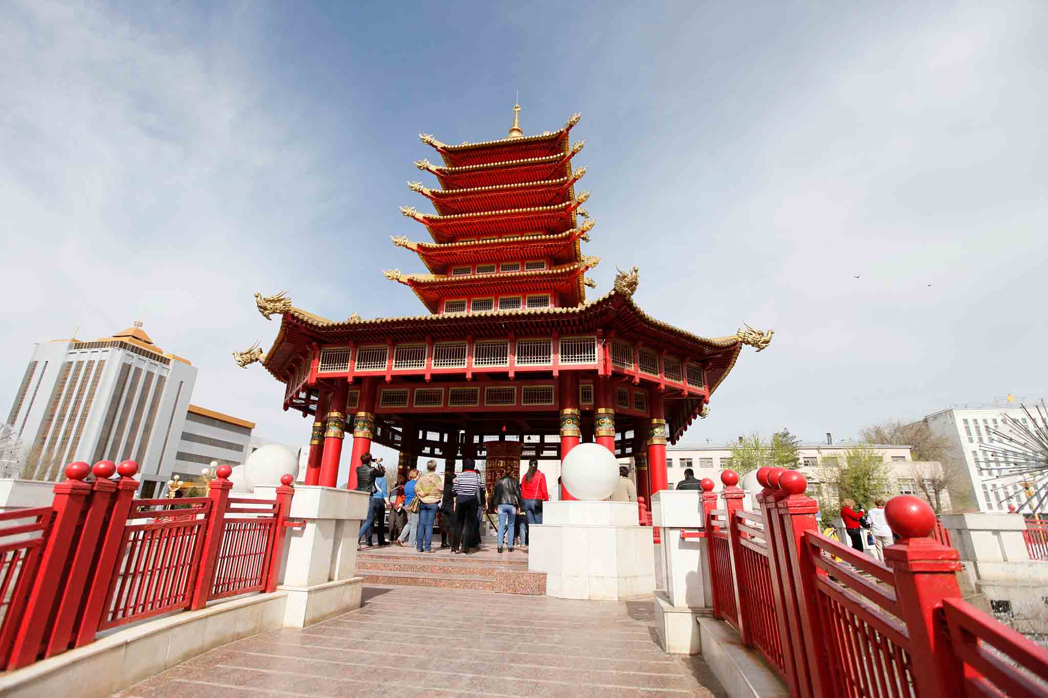 Эта пагода в самом центре города сложена из семи ярусов и окружена фонтанами. Каждый ярус символизирует день недели, цикличность человеческой жизни и семерых будд, посетивших мир. В нижней части сооружения установлен молитвенный барабан, преподнесенный в дар тибетскими монахами. Считается, что он дарит верующим умиротворение, гармонию, силу и уверенность.