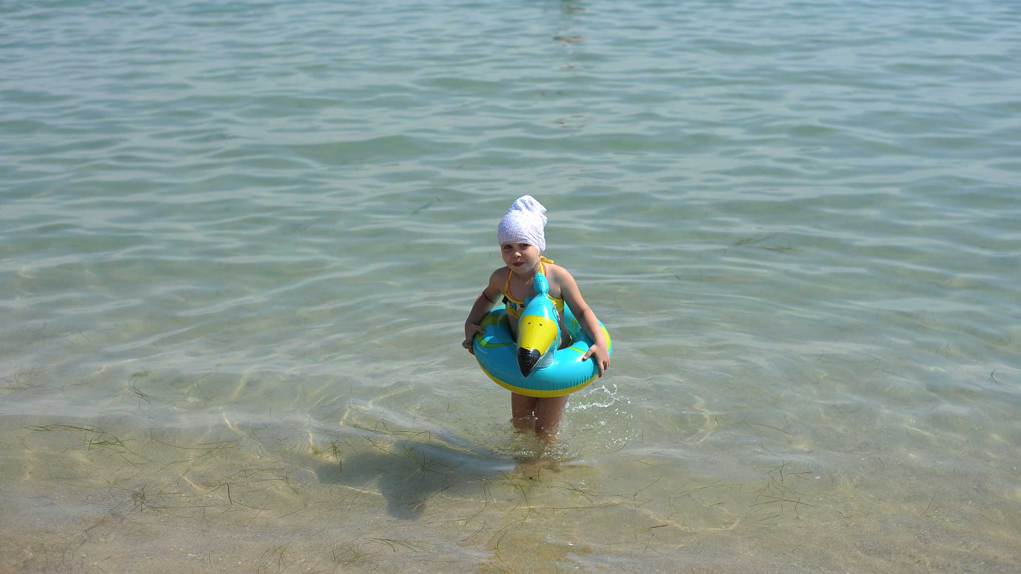 Евпатория — это в первую очередь детский курорт. На пляжах здесь мелкий песочек, у берега моря неглубоко, вход пологий. На каждом пляже для маленьких гостей полно развлечений: водные горки, батуты, качели. Можно покататься на «банане» или «таблетке», попрыгать по волнам в большом прозрачном шаре или поплавать с родителями на катамаране.