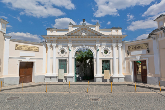 В Виноградном дворике вы увидите колонну с двуглавым орлом из белого мрамора. Она появилась в честь Александра I, который приезжал на открытие керас.