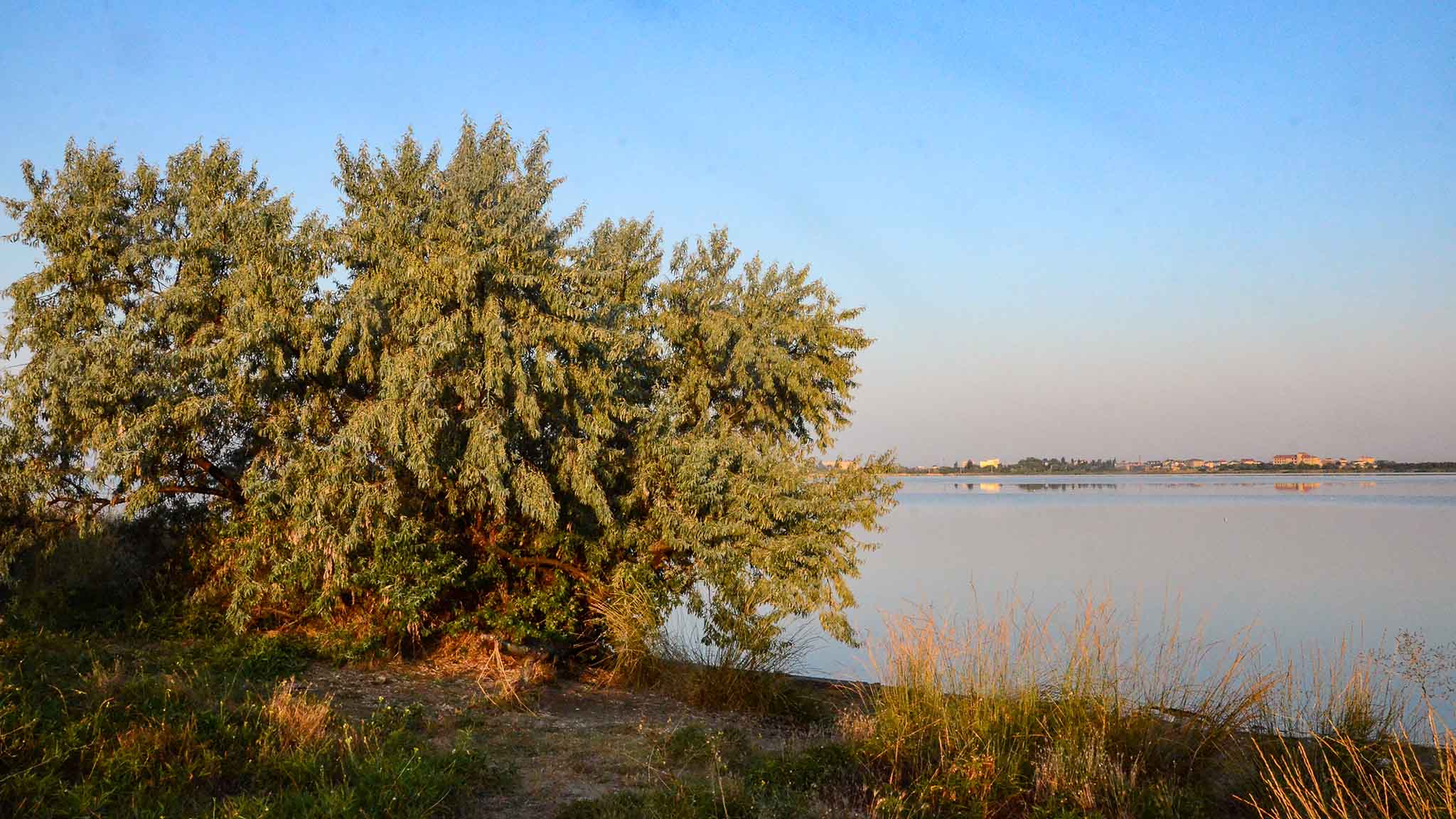 Стоит просто погулять по берегу озера. Он достаточно живописен: высокие, не боящиеся соленой воды тростники, заросли низкорослых диких маслин с серебряными листьями и зеркальная водная гладь, по которой лишь изредка пробегает рябью свежий ветерок.