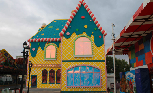 Ничего подобного ранее не было ни в Евпатории, ни вообще в Крыму. Музей находится на территории парка аттракционов «Авангард», где уже есть интересные выставки, вроде «Дома великана», «Перевернутого дома» и других. Так что музей Цвета и сладостей органично вписался в их компанию.