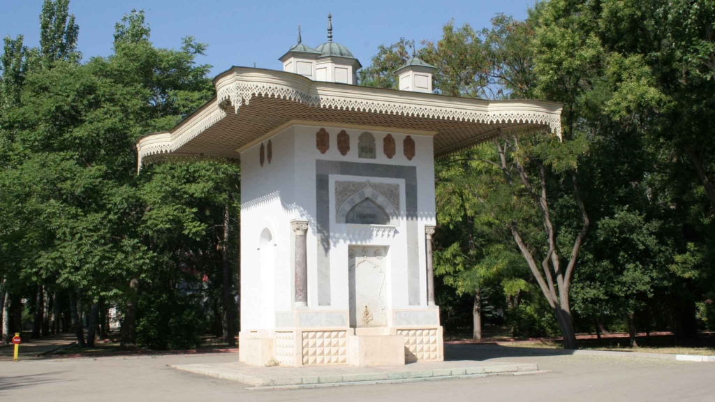 На первый взгляд эта постройка в старинном восточном стиле напоминает не фонтан, а то ли беседку, то ли часть султанского дворца. На самом же деле это элемент водопровода, который вот уже 200 лет снабжает Феодосию пресной водой. Он не является фонтаном в привычном нам смысле слова — здесь вы не увидите живописно бьющих в воздух или стекающих каскадами струй, скорее, это источник, который в жаркую погоду поможет утолить жажду и освежить лицо.