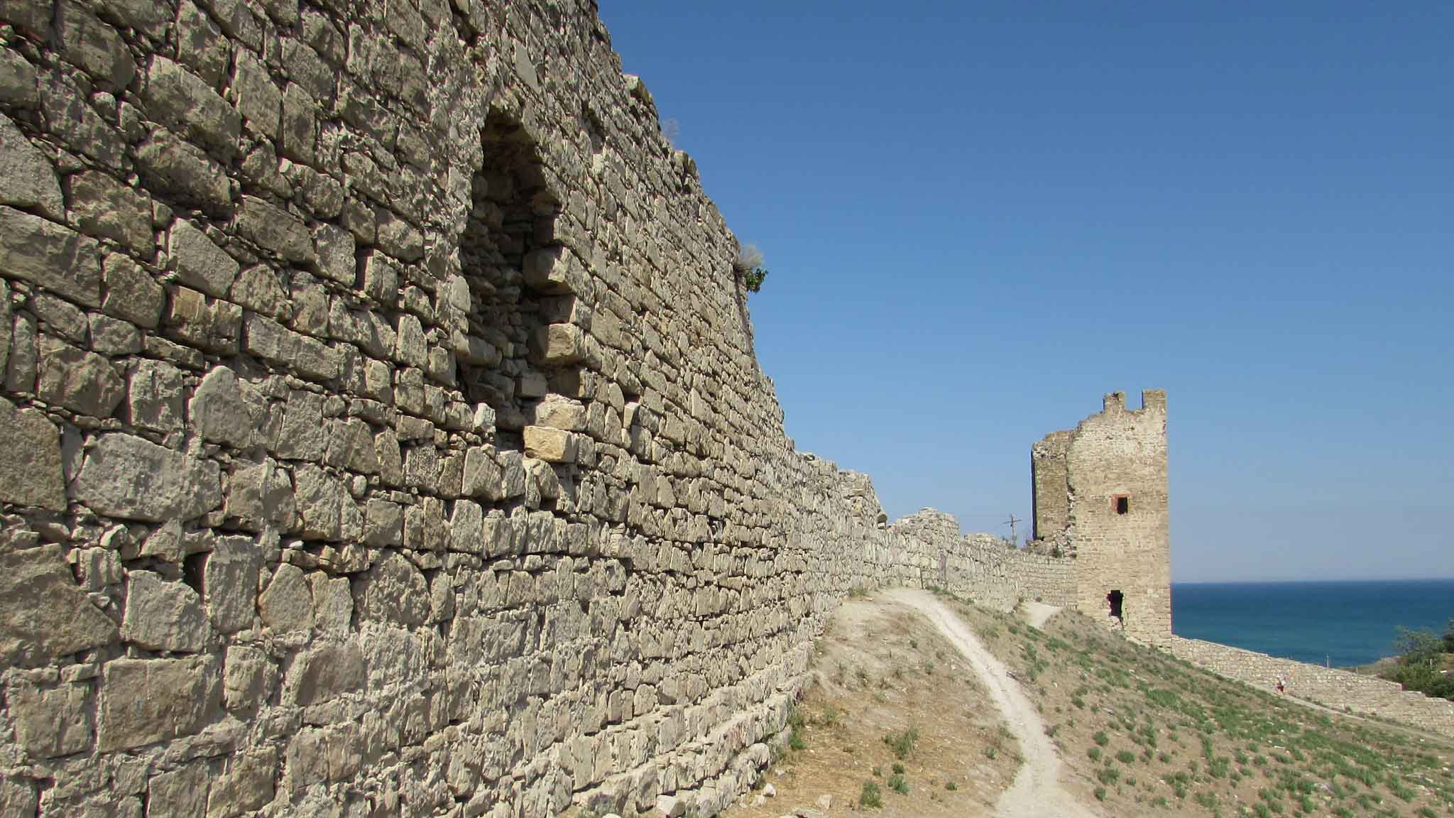 Каменные останки крепости на берегу моря. Когда-то здесь стояла древняя Кафа — богатый портовый город, завоевать который было немало желающих. 30 башен и стены из местного известняка поставили, чтобы уберечь Кафу от врагов. Строили действительно на века: фрагменты, которые сохранились до наших дней, датируются 14 столетием.