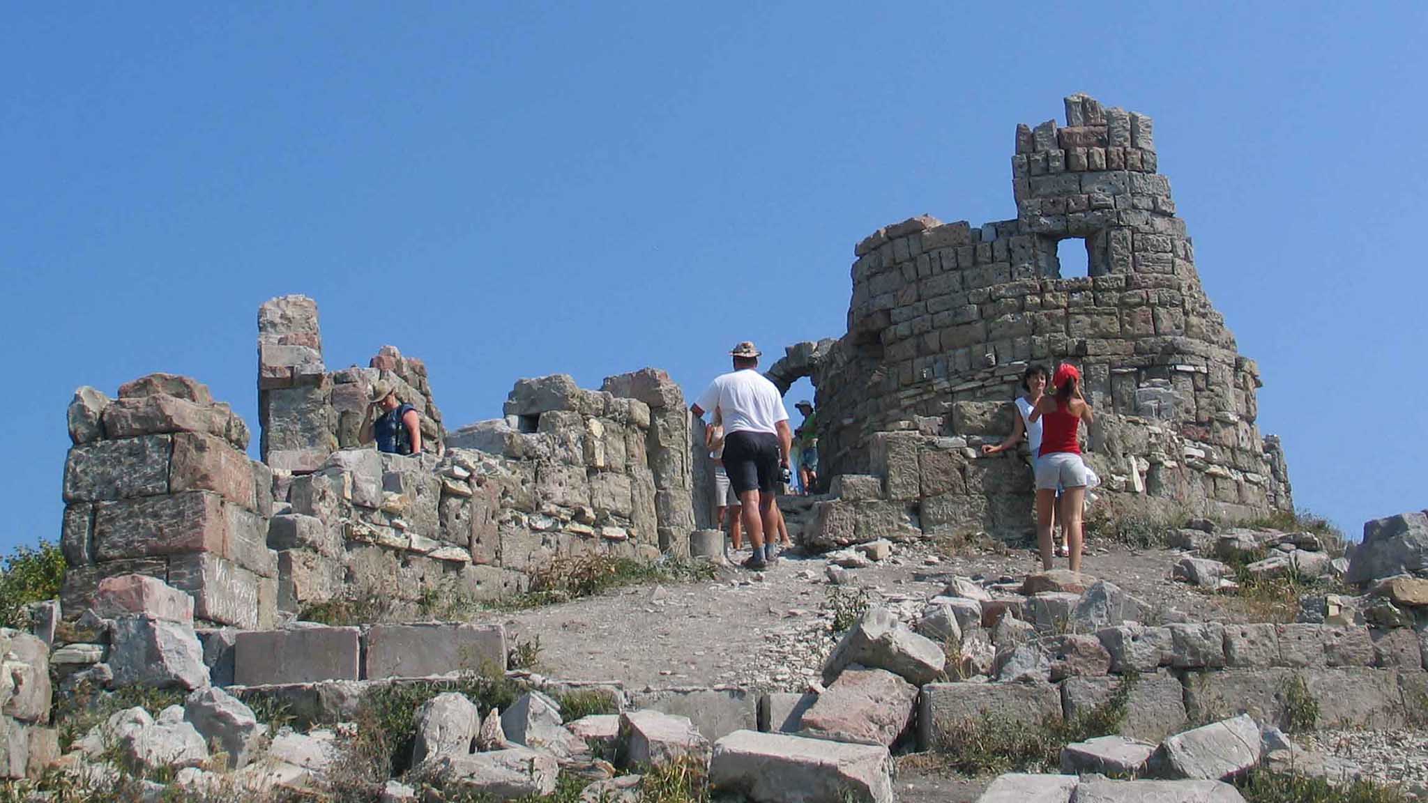 Крепость Грозовые ворота, хоть и построена из пеноблоков, издалека выглядит как развалины средневекового замка. Необычная декорация, расположенная в горах над бухтой, стала местной достопримечательностью.