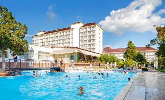 Сюда часто приезжают как в отель. Здесь пятиразовое питание по системе «шведский стол», два открытых семейных бассейна и один детский в виде корабля, спортивные площадки, крытый бассейн, тренажерный зал, беседки и фонтаны. Можно наслаждаться отдыхом, пить кислородные коктейли, травяные настои и расслабляться в SPA-центре.