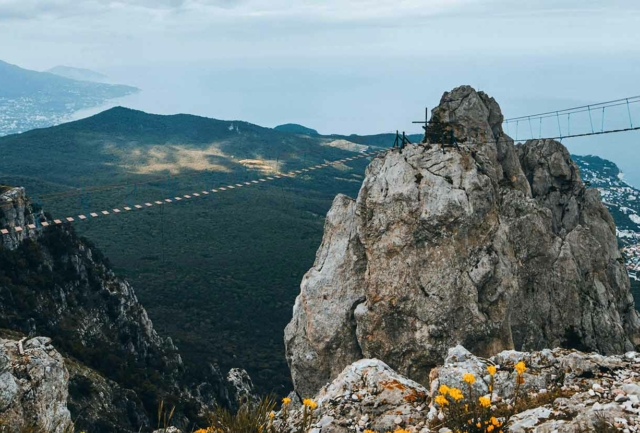 Экскурсию можно начать с канатной дороги в фанпарке «Бобровый лог». Подъем займет не более 10 минут и наверху нужно будет пройти еще 5 минут — и вы окажетесь на смотровой площадке, где каменные исполины предстанут во всей красе. Кстати, в национальном парке можно и нужно залезать на скалы (только осторожно), чтобы любоваться закатами и бесконечными лесами. Удобная обувь и ветровка придутся очень кстати.