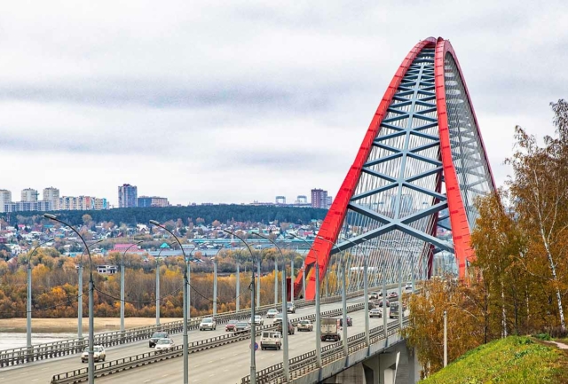 В Красноярске через Енисей проходят шесть мостов, но только один из них знаком даже тем, кто ни разу не был в этом городе. Это Коммунальный мост. А известен он, потому что был изображен на 10-рублевой купюре. Вечером сооружение красиво подсвечивается, поэтому многие фотографируются на его фоне.
