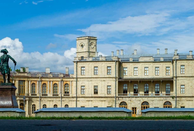 На создание Павловского дворцово-паркового ансамбля ушло не менее полувека, над ним трудились три поколения архитекторов и оформителей. Считается, что памятник Павлу I на фасадной площади дворца был установлен как подражание скульптуре Людовика XIV у входа в Версаль.