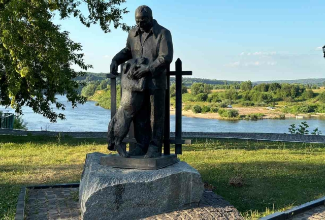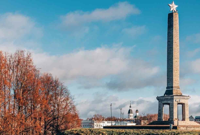 Здесь на высоком холме установлена 25-метровая статуя бойца, склонившего голову в память о почти восьмистах тысячах, павших в кровопролитную Ржевскую битву (в период с 8 января 1942-го по 31 марта 1943-го гг.) воинах Красной Армии. Фигура бойца словно парит в воздухе из-за того, что его плащ-накидка к низу превращается в журавлей (тех самых, о которых писал Гамзатов в своем знаменитом стихотворении).