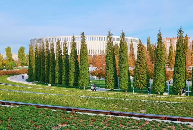 Удивляет длиннющее здание с колоннами, которое местные называют «бассейном». Как выяснилось, это, действительно, многофункциональный спортивный центр с огромным трансформируемым бассейном и трибунами аж на 1000 человек.