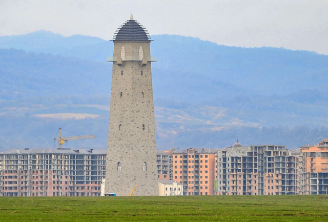 Памятный знак «Принятие ислама» (это современное здание с золоченым куполом, стилизованное «а-ля Восток») интересно тем, что в нем хранится самый большой в мире Коран (размером полтора на два метра и весом 800 кг), здесь же представлена и одна из самых маленьких копий священной книги.