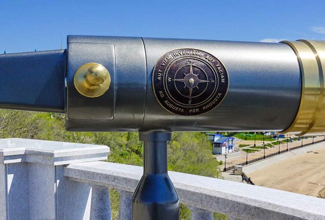 От Рождественской церкви можно подняться вверх по крутому склону к парку 800-летия Нижнего Новгорода, откуда также открываются шикарные виды на панораму города, Оку (слева) и Волгу (справа).